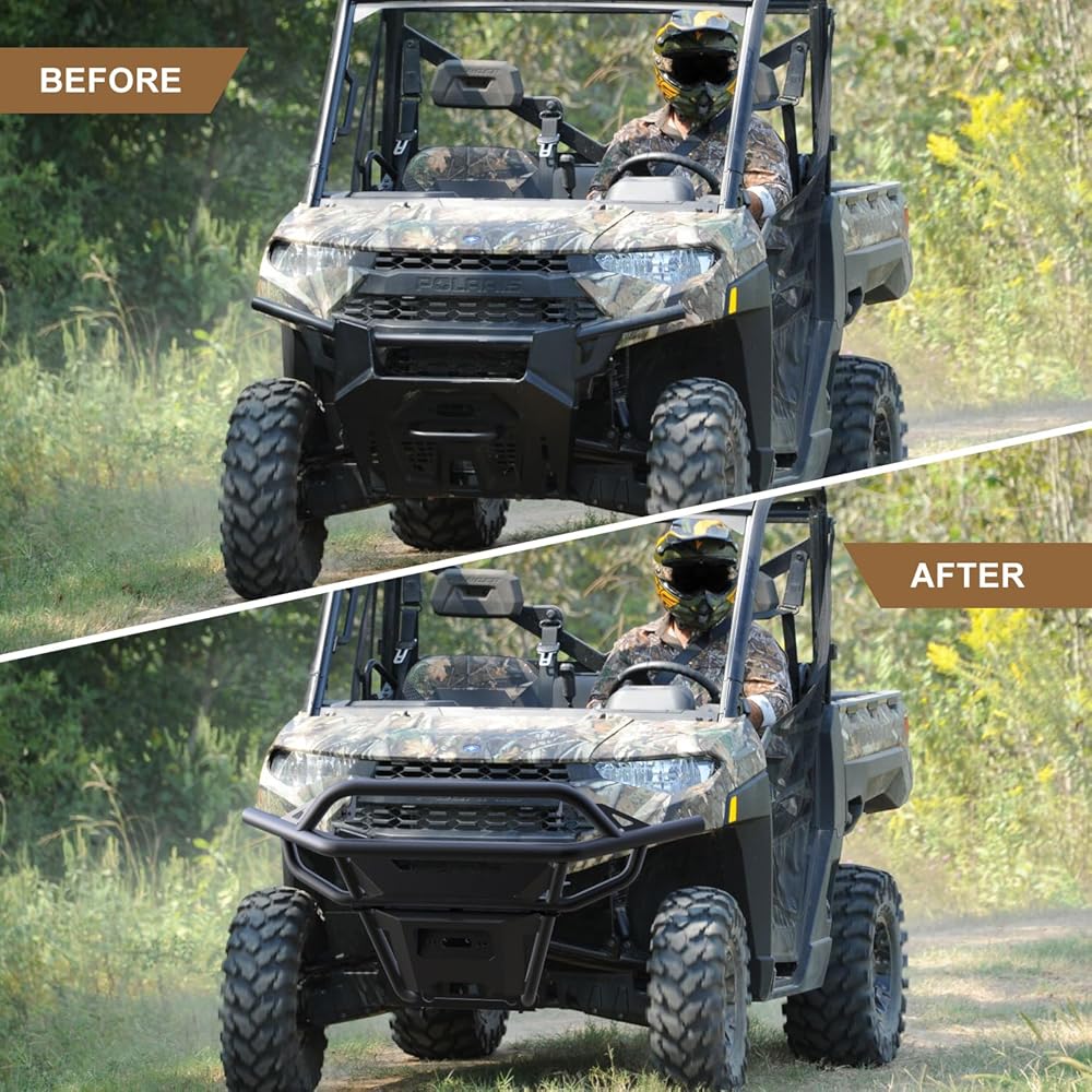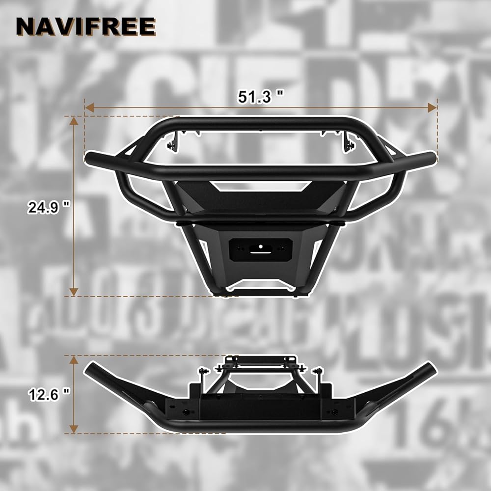 【تغطية قوية ومتينة وكاملة】 مصممة لتحمل متطلبات مغامراتك على الطرق الوعرة. مصنوع من أنبوب فولاذي DOM بسمك 1.5 بوصة. يوفر المصد الأمامي الكامل الحماية الكاملة. وسيحمي البلاستيك الأمامي إلى حد ما بما في ذلك المصابيح الأمامية والزوايا الأمامية لجهاز RZR الخاص بك في حالة الاصطدام. قم بحماية طلاء Polaris RZR وهيكل السيارة من الجرجر والخدوش مع المصد الأمامي NAVIFREE، يحتوي هذا المصد أيضًا على لوحة تثبيت لمصباح LED مكعب مقاس 2 بوصة لجعل الرحلات الليلية أكثر أمانًا