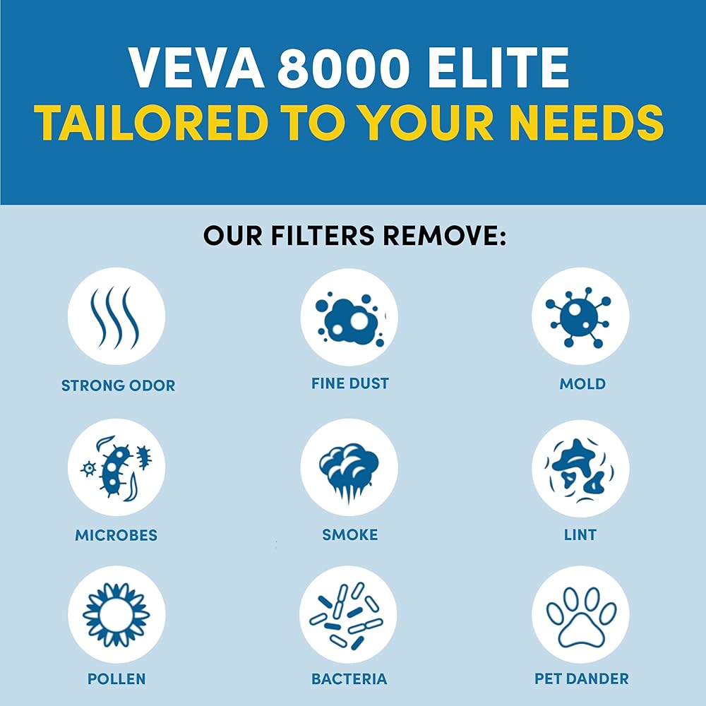 ملاءمة مثالية: مصممة لموديلات تنقية الهواء VEVA 8000 Elite ملحوظة: يجب استبدال الفلاتر كل 2-7 أشهر للحصول على الأداء الأمثل
