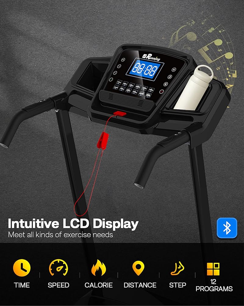 Versatile Workout Programs with Manual Incline: Features 12 preset training modes and 3 manual incline settings, allowing you to customize your workout for optimum results. This makes it an excellent choice for anyone looking for a folding treadmill with incline capabilities for their home fitness routine.