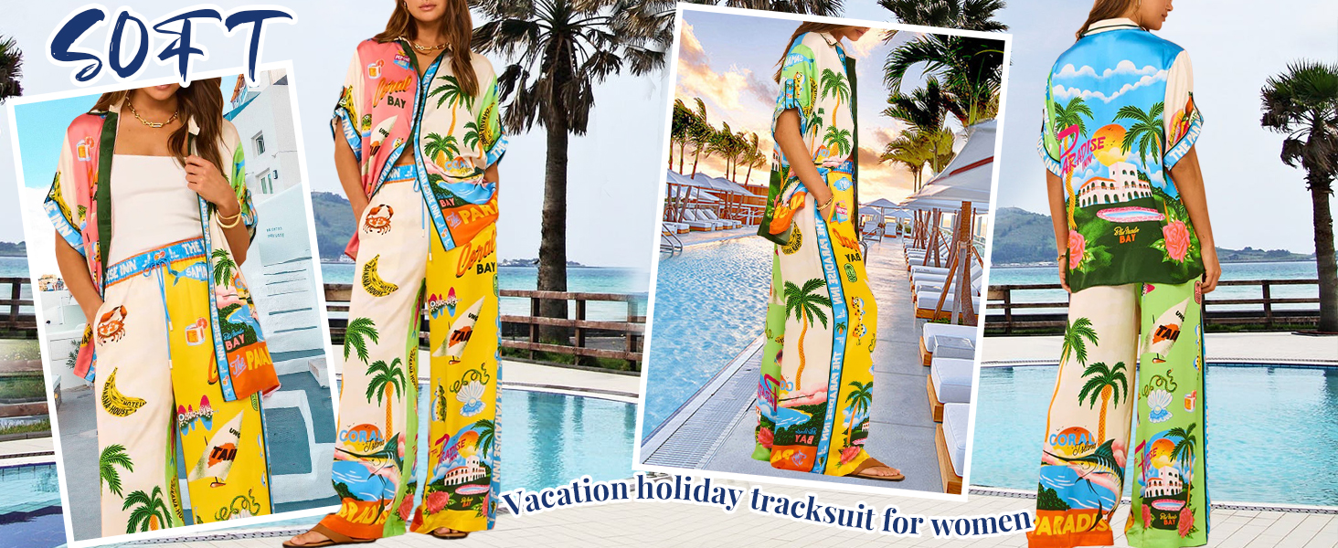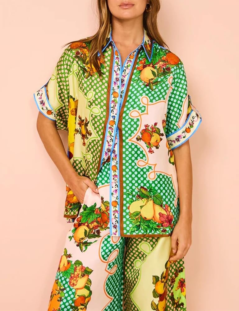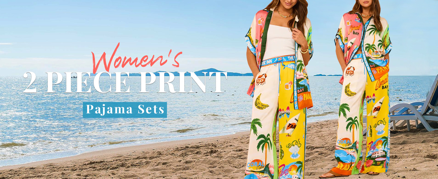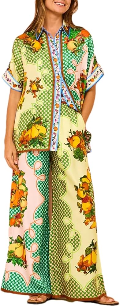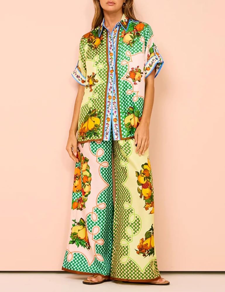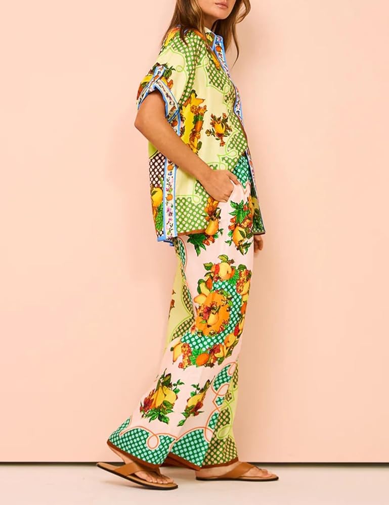 • أطقم سراويل مطبوعة بأرجل واسعة، نمط بوهو، مجموعات صيفية هيبي للنساء، مجموعة بيجامات مطبوعة خفيفة الوزن مناسبة للارتداء المنزلي، وحفلات البيجامات، ورائعة للارتداء مع الأحذية المسطحة أو الكعب العالي للحصول على مظهر أنيق وكاجوال.