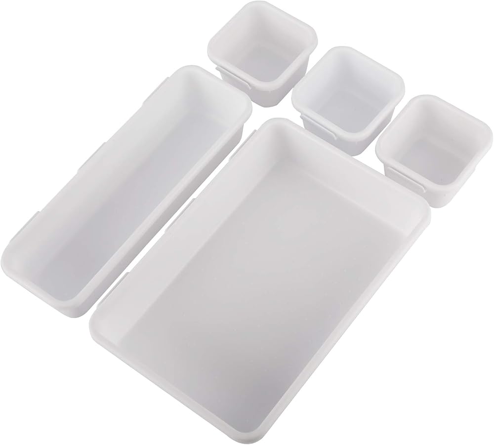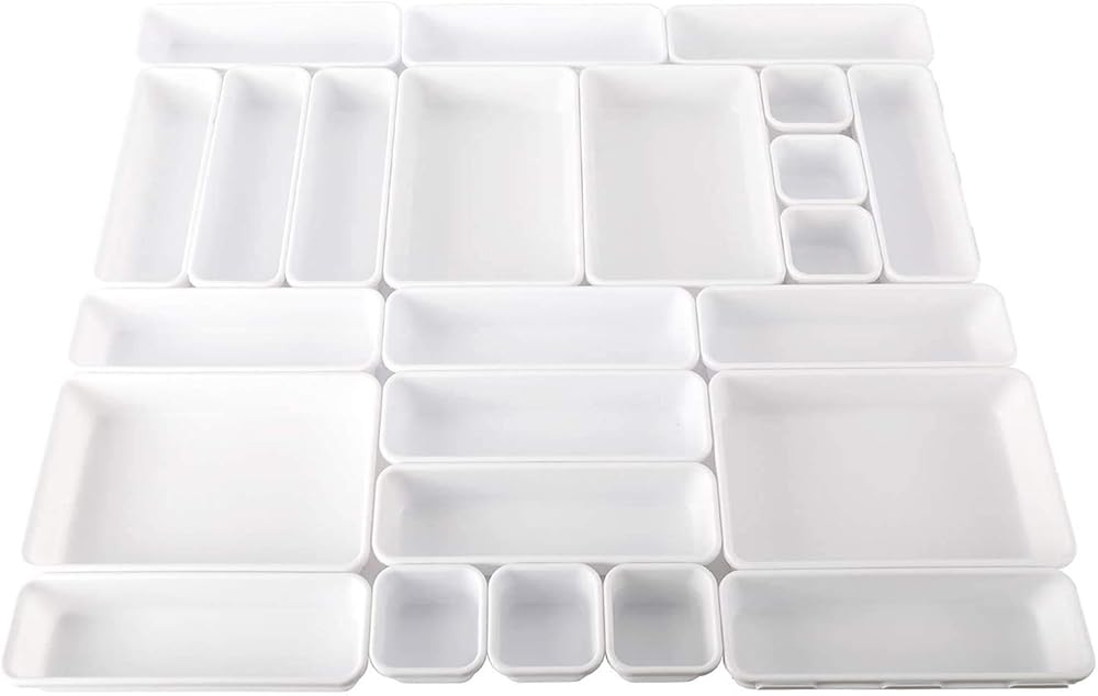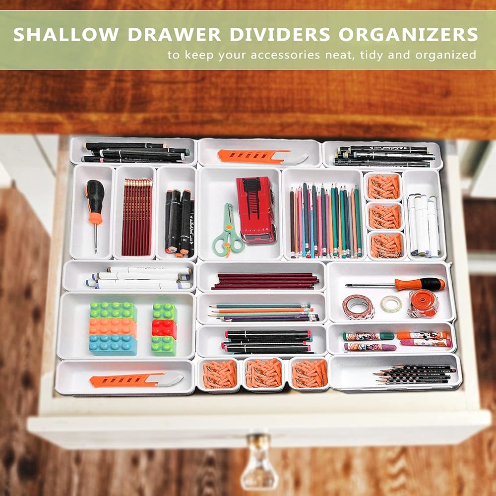 تصميم مخصص - مصنوعة من البلاستيك المتين، يمكن استخدام منظمات فواصل الأدراج الضحلة هذه معًا أو بشكل منفصل. منظمات أدراج مختلفة الحجم يمكنك تخصيص التصميم ليناسب أي حجم درج أو احتياجات محددة.