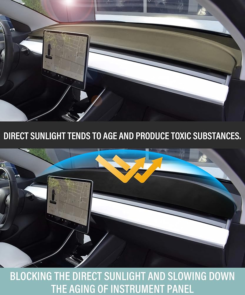 • [Function] Anti slip car dashboard pad can maintain consistent color and maximum color fastness in sunlight for a long time. It has a low weaving rate, which can achieve a smooth and low glare appearance, and the dashboard will not crack due to sunlight during driving, reducing the heat of the black dashboard, thereby maintaining internal cooling and safe driving.
