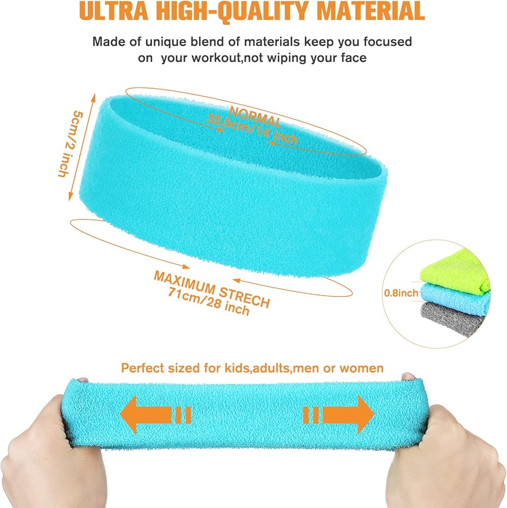 The gym sweat headband measures approx. 16 x 5 cm/ 6.3 x 1.97 inches in size, fitting most people's head circumference, elastic and adjustable, convenient for you to adjust to fit your various needs.