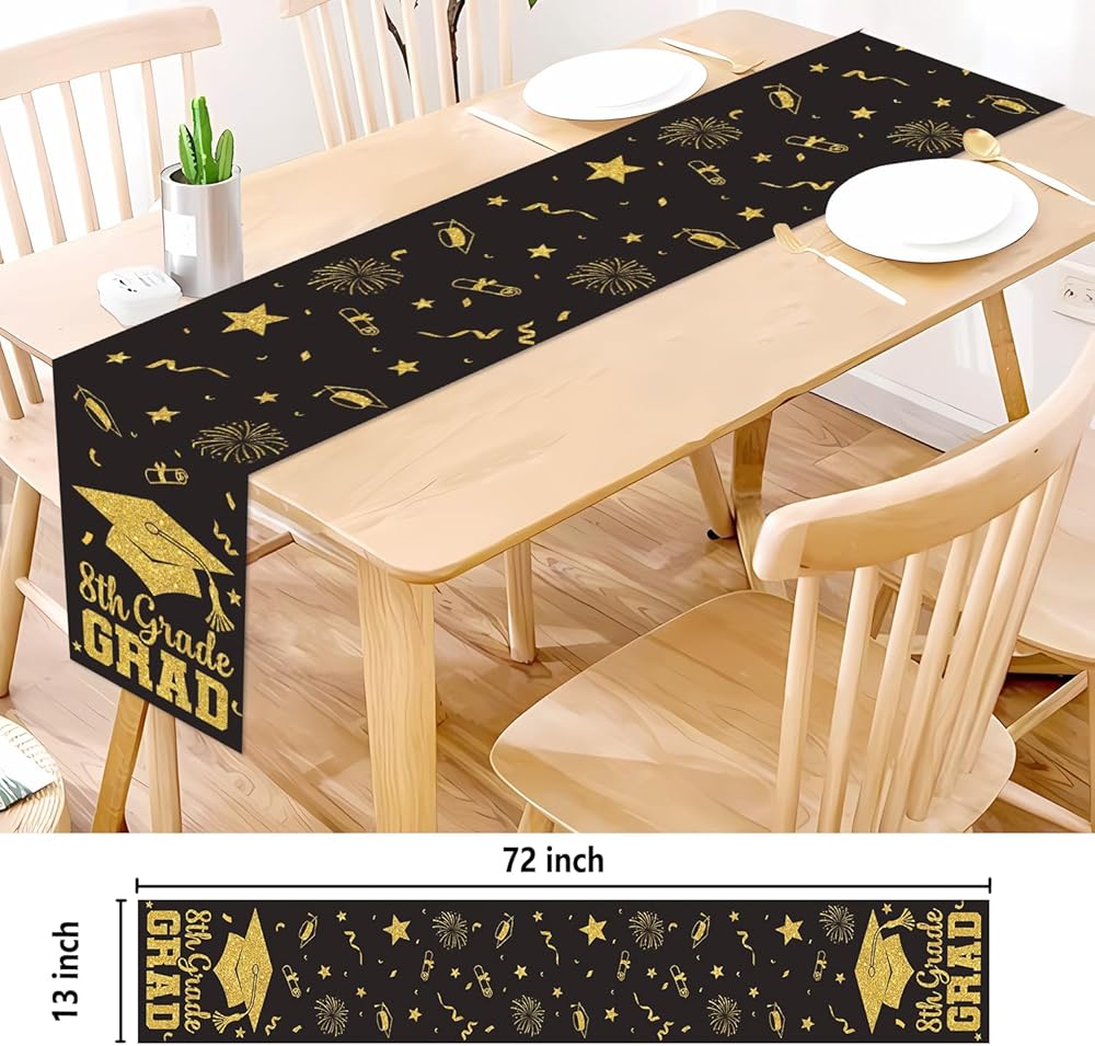 8th Grade Graduation Decorations 2024, 8th Grade Graduation Table Runner, 8th Grade Graduation Table Cloth for Kids 8th Grade Graduation Classroom Home Party Decorations