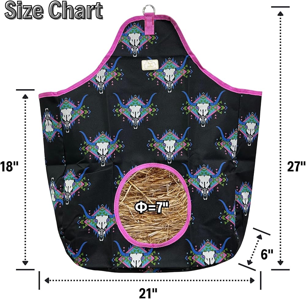 【Round Feed Hole】: The sturdy bag has a 7" diameter round hole in the front to make the hay easily accessible for horses, horses can be fed either from the top or from the hole in the front.