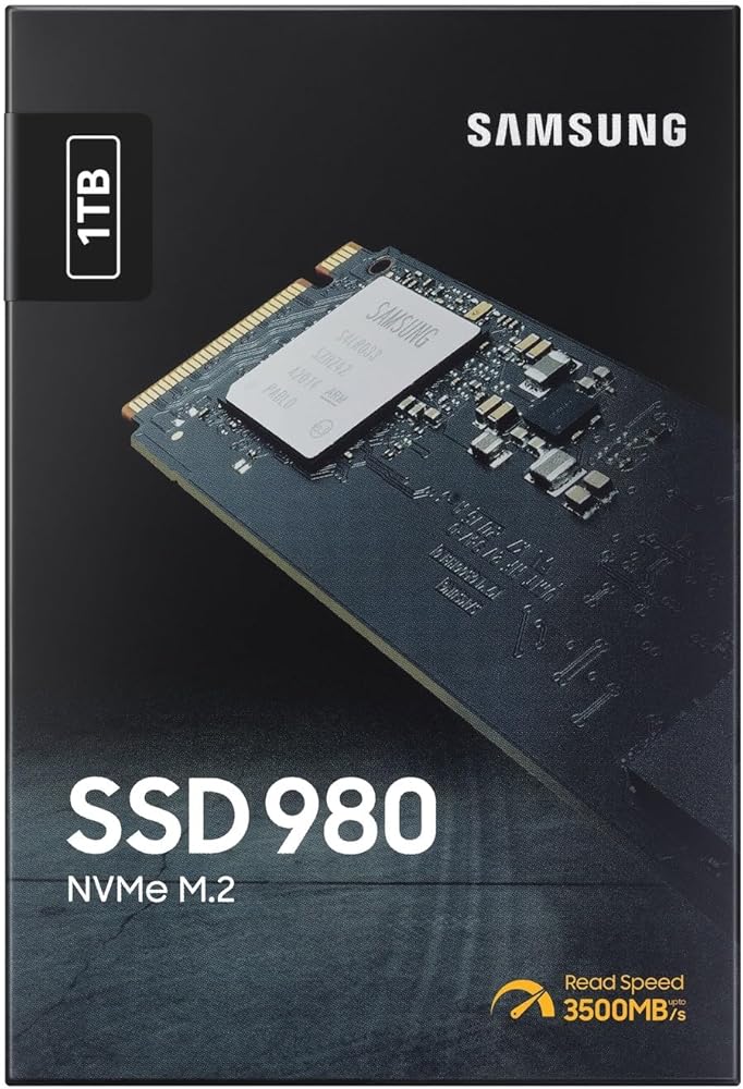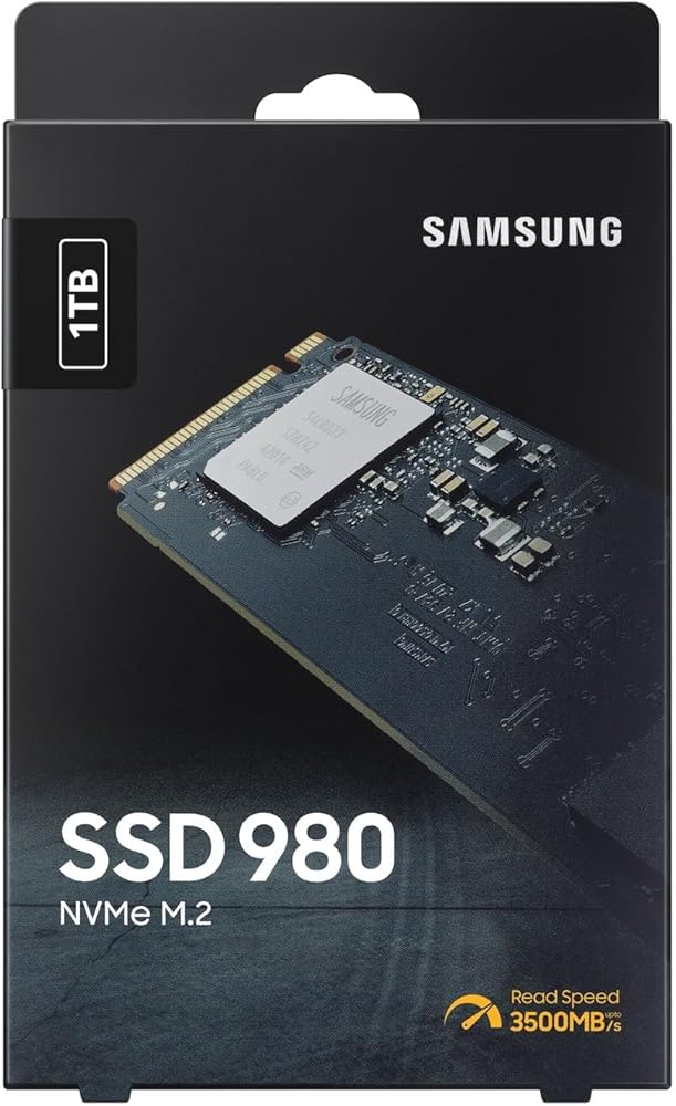 Samsung 980 1 تيرابايت PCIe 3.0 (ما يصل إلى 3.500 ميجابايت/ثانية) NVMe M.2 محرك الحالة الصلبة الداخلي (SSD) (MZ-V8V1T0BW)