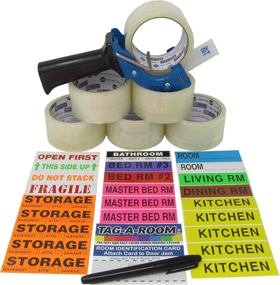 قم بتعبئة أمتعتك بشكل آمن باستخدام شريط التغليف القوي وموزع مسدس الشريط: تشتمل مجموعة التعبئة والتحريك الخاصة بنا على 6 لفات من شريط التغليف القوي وموزع مسدس شريطي مقاس 2 بوصة، مما يوفر كل ما تحتاجه لتعبئة ممتلكاتك بشكل آمن. ستحافظ هذه المواد عالية الجودة على صناديقك مغلقة بشكل آمن أثناء النقل، مما يضمن بقاء ممتلكاتك آمنة وسليمة.