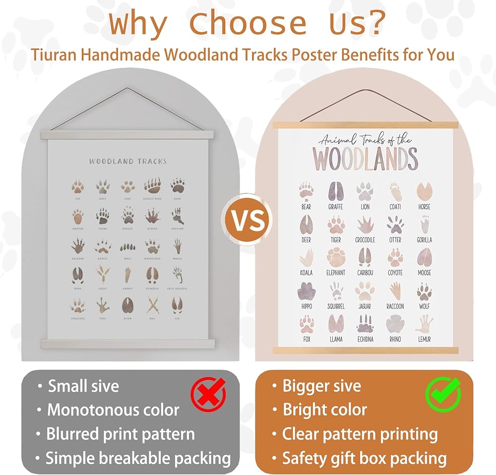 هيكل عالي الجودة: مصنوع من خشب متين بسمك 0.5 بوصة وقماش عالي المتانة. علامة دليل ميدانية لمسارات الحيوانات الزاهية والتي لن تبهت بمرور الوقت. قوي بما فيه الكفاية للعرض في الأماكن المغلقة أو الهواء الطلق.