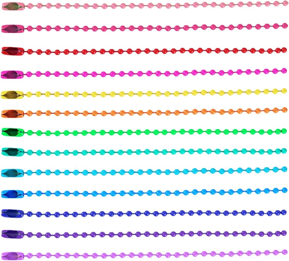 DIY Your Crafts 200 pcs ball metal chains in 14 colors random, adding a dash of colorful on your craft projects with these colorful ball metal chains. The chain tough and not easy to break, the ball bead are at uniform size and with smooth surface, comfortable to touch. These bead ball metal chains can be adjustable, just simply cut between the balls with scissors to make it your desired length. Apply for dog tag chains, beaded chains, jewelry chains, badge chains, pull chain, bottle cap pendant necklace and other DIY kids craft creation. Specification Material: Metal Color: Mixed Color Length: 120 mm / 4.72 inch Bead diameter: 2.4 mm / 0.09 inch Package: 200 pcs Warm Tips Small parts, keep storage. All package were packing by hand, if you have any question please let me know.