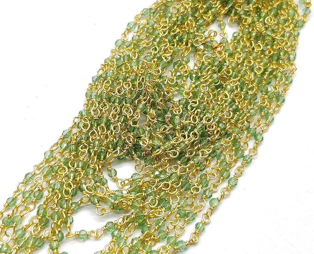 Peridot Quartz Rosary Chain 36 Inch Round Faceted 2MM 24k Gold Plated 3 Feet Beads Necklace Chains Bulk for DIY Necklace Bracelet Choker Jewelry Making DIY Crafting Accessories RoChain-18, Very Beatutiful and Durable: This rosary beaded chain is made of good quality stone beads which are different from each other, and it is connected with tight twisted brass findings without jumprings so that it could not broken easily. Wide Application: You could use them to decorate lamp shades, attach to table cloths, make curtain, create your own chandeliers, necklaces, bracelets, earrings, eyeglass chain holder and and so on. Easy to Use and Store: The chain is rolling in a reel to avoid knotting; when not in use, just roll it back to the reel, easy and convenient. Kindly Note: Color might be slightly different from the picture because of different display device. For any questions about our products, please contact us directly and we will assist you resolve any issue.