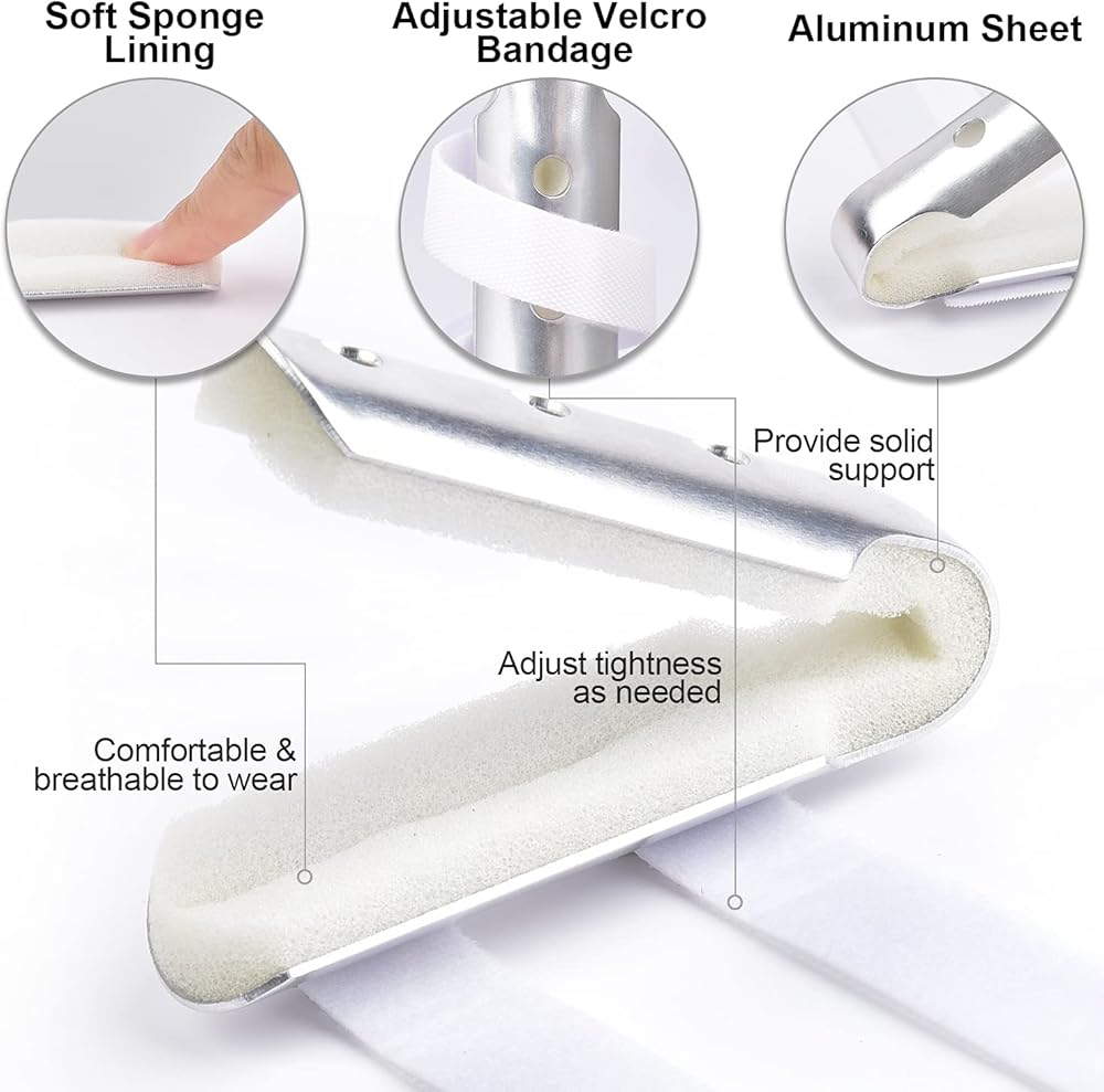 مواد فاخرة: مصنوعة من صفائح الألومنيوم الصلبة وبطانة إسفنجية ناعمة، يمنحك دعم الأصابع الخاص بنا تجربة ارتداء جيدة ومريحة مع فتحات التهوية. الحزام القابل للتعديل يجعل من السهل ارتداؤه أو خلعه.
