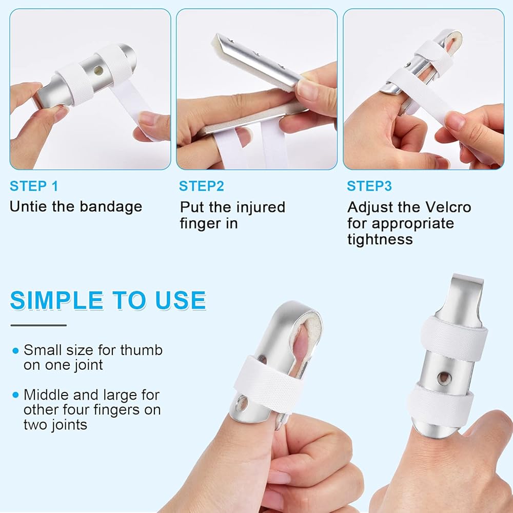 ما تحصل عليه: 3 قطع من جبائر الأصابع المعدنية. [تم اختبار كل جبيرة من أصابعنا بدقة وهي في حالة عمل جيدة. إذا وجدت أي مشكلة في الجودة، فيُرجى الاتصال بنا للاستبدال أو استرداد المبلغ بالكامل.]