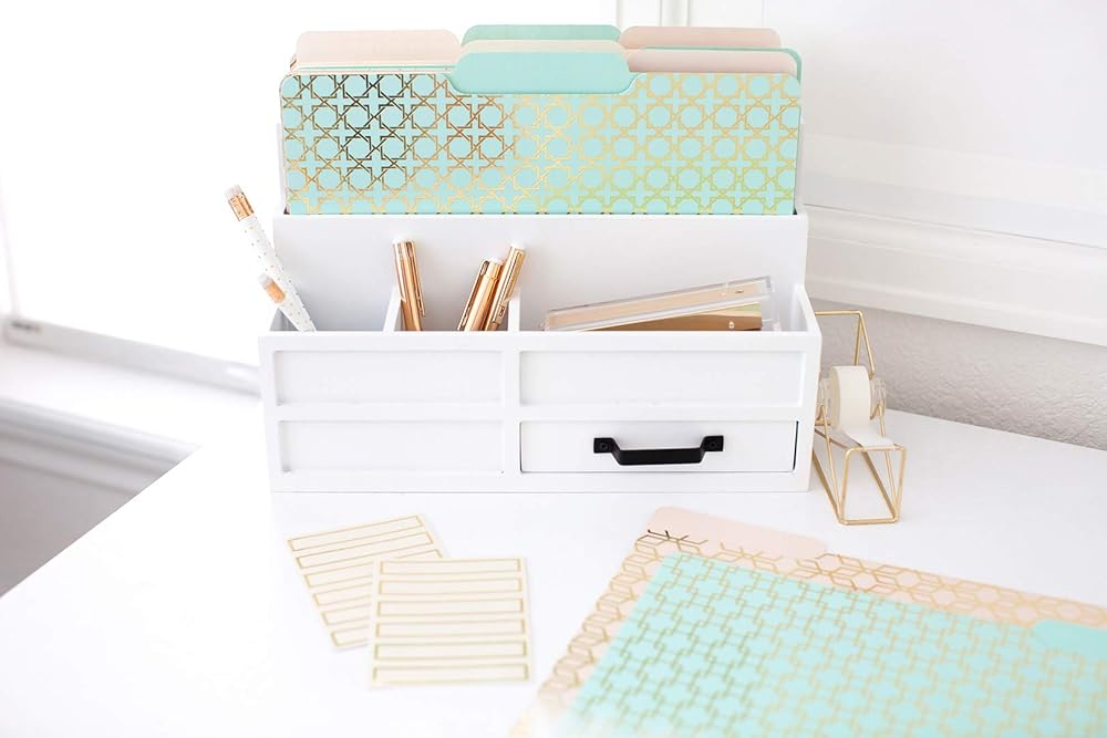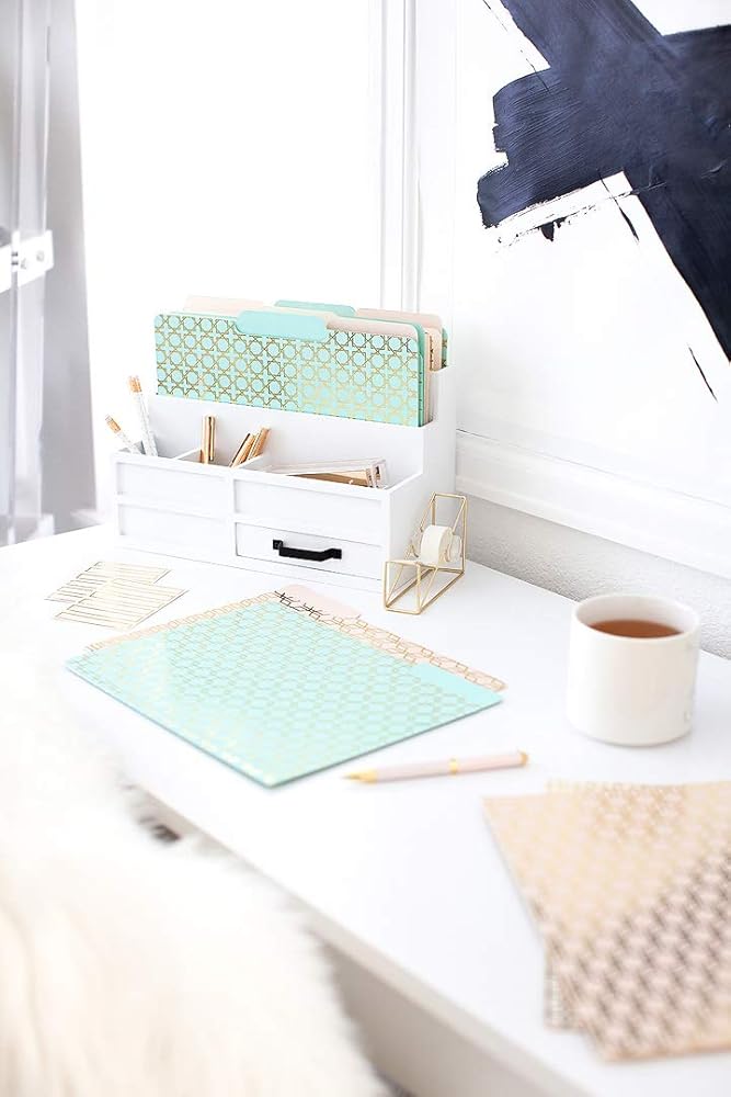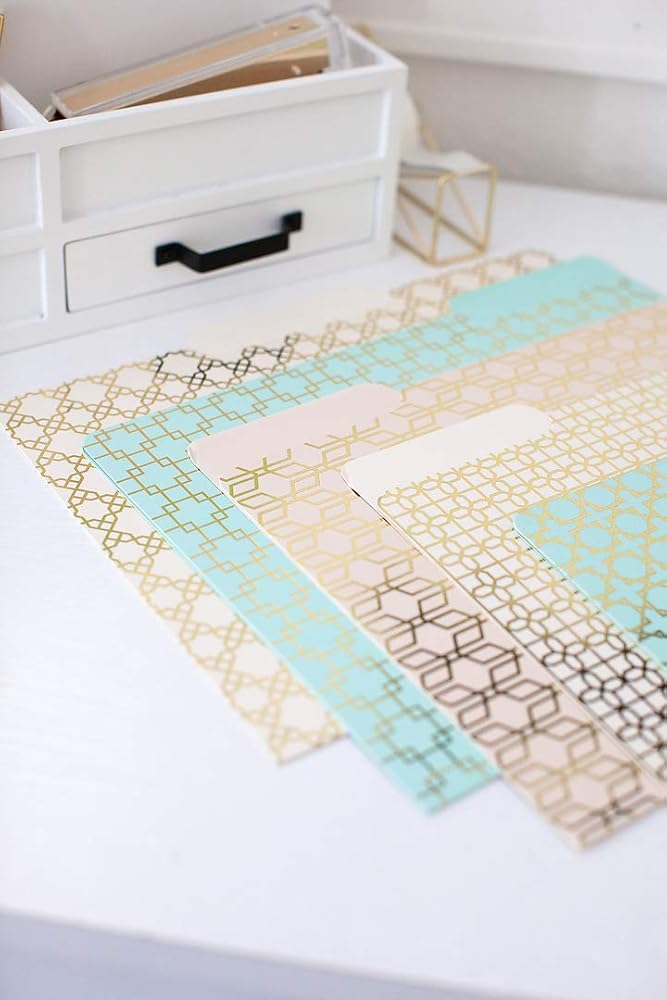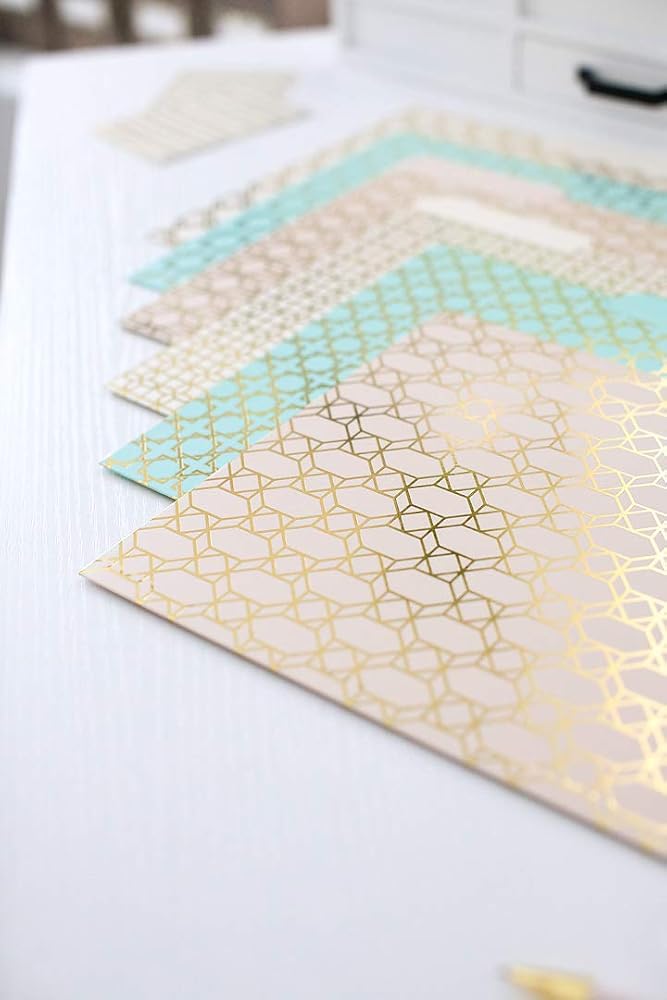 فريدة وأنيقة: هذه المجلدات الملونة الاثني عشر هي مجلدات ملفات ذات تصميم جيد لخزانة الملفات، بدلاً من مجلد مانيلا. يبدأ منظم خزانة الملفات الرائع بطية ذهبية أو مجلدات ذهبية بتصميم فريد، مثل هذه المجموعة.