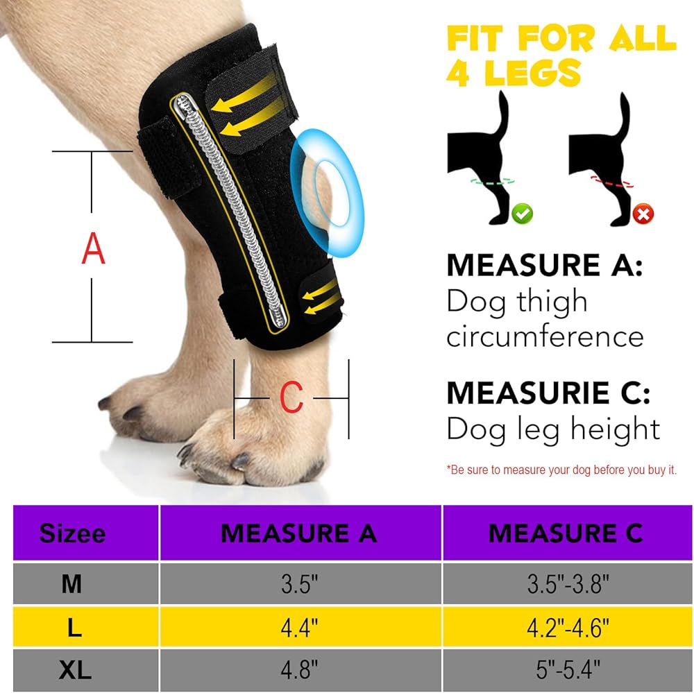 CHOSE THE RIGHT SIZE: To get an exact fit for dog acl brace hind leg support, measure the thigh circumference and leg height. Then refer to our size chart. If you get a measurement between sizes, choose the smaller one.