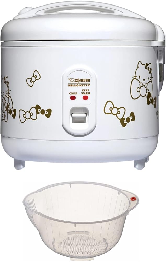 • Bundle Includes: Zojirushi Hello Kitty 5.5-Cup Automatic Rice Cooker and Warmer (White) and Inomata 9.5-inch Rice Washing Bowl with Side and Bottom Drainers (Clear)