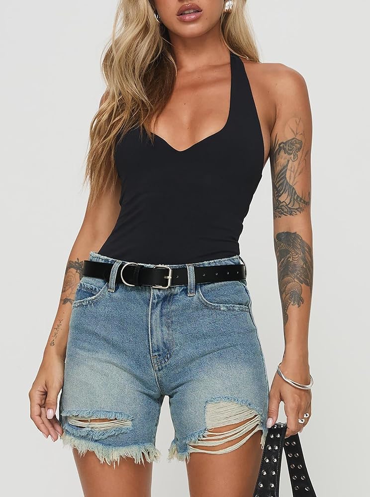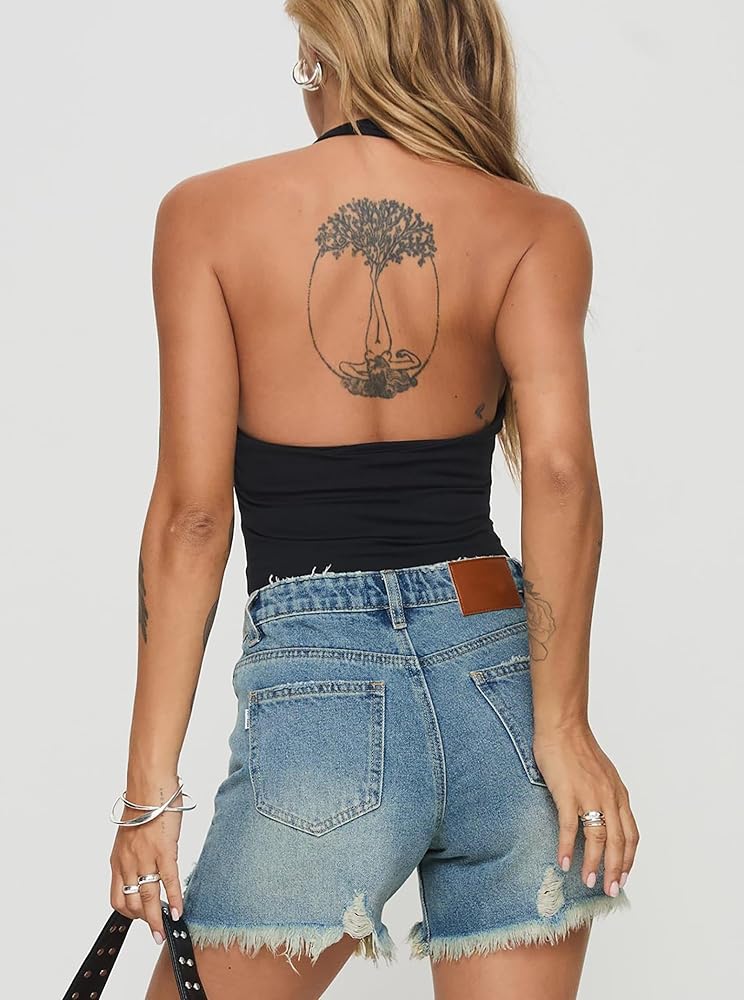 Style - Casual and sexy style, the sexy backless bodysuit match well with your any jeans, denim shorts, casual pants or skirts