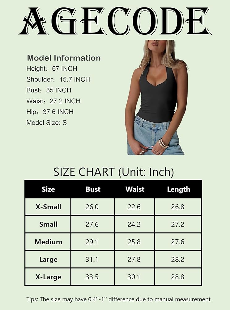 AGECODE Women's Sexy Halter V Neck Backless Bodysuit Sleeveless Summer Tank Top Body Suits
