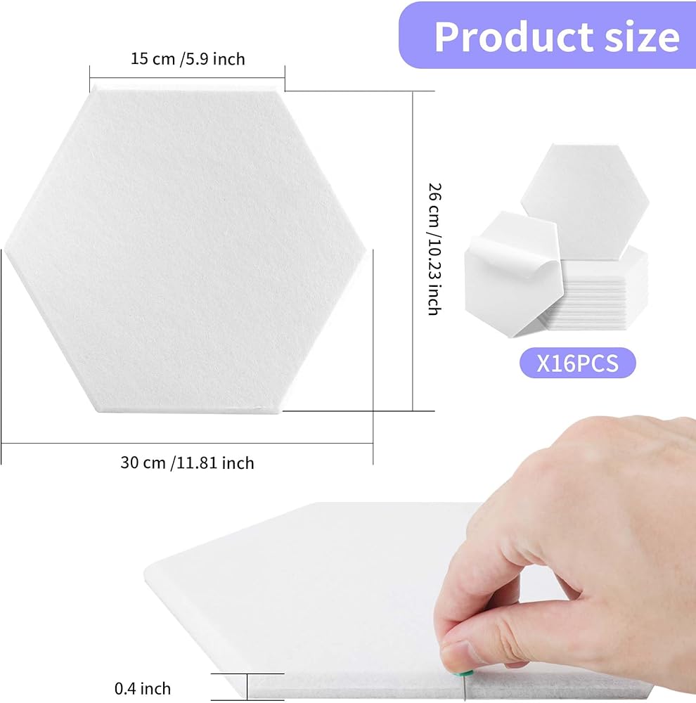 • 【Hexagon Acoustic Panels】The package includes 16 pieces of white hexagonal foam wall panels with a hexagonal design that measures approximately 11.81 x 10.23 x 0.4 inches.Without self-adhesive