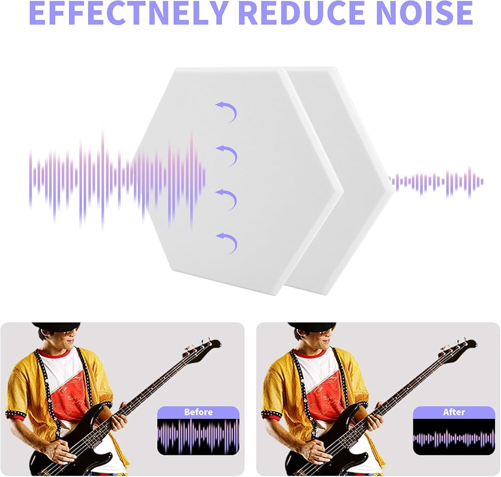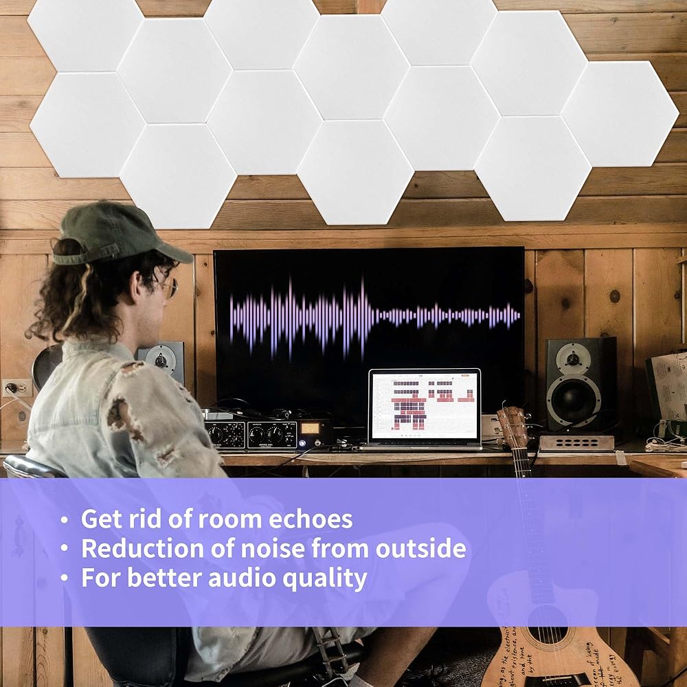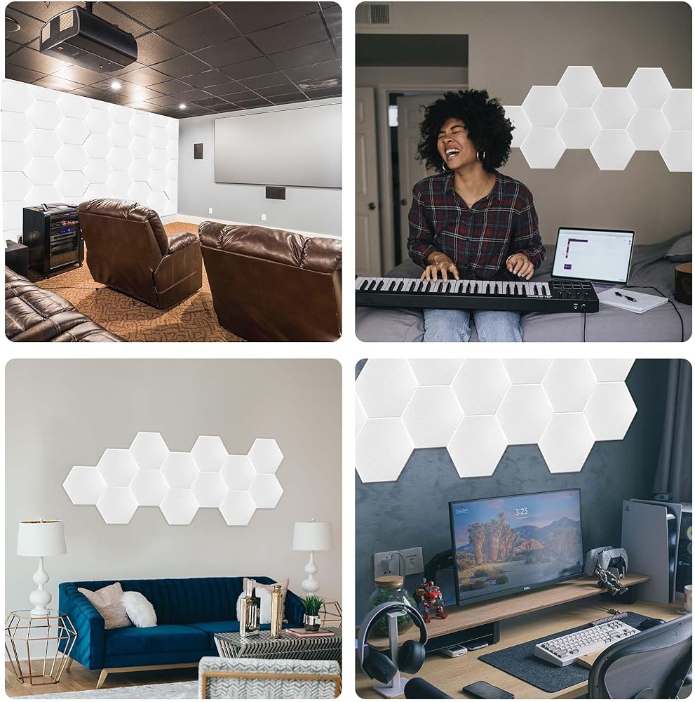 • 【Wide Applications】White hexagonal soundproof foam panels are suitable for professional studios, recording studios, rehearsal studios, vocal booths, concert halls, podcasts, home entertainment theatres, offices and more.