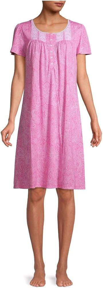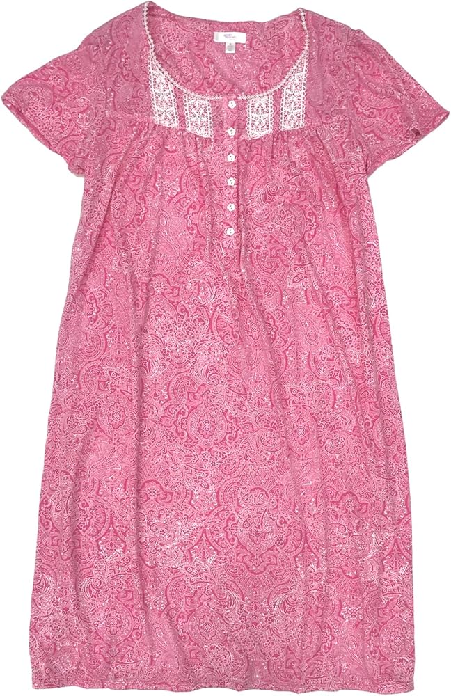 • You will love the lightweight feel of this pretty pink paisley floral nightgown.
