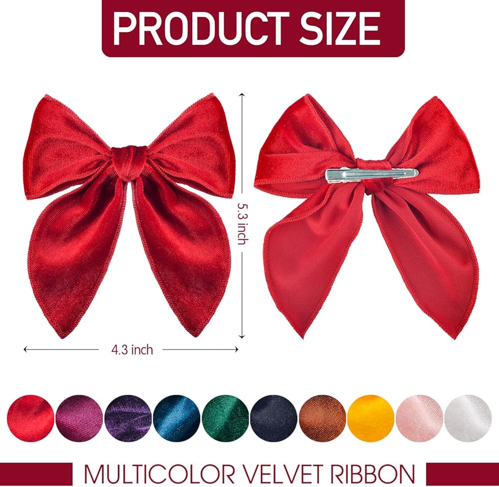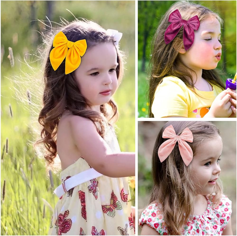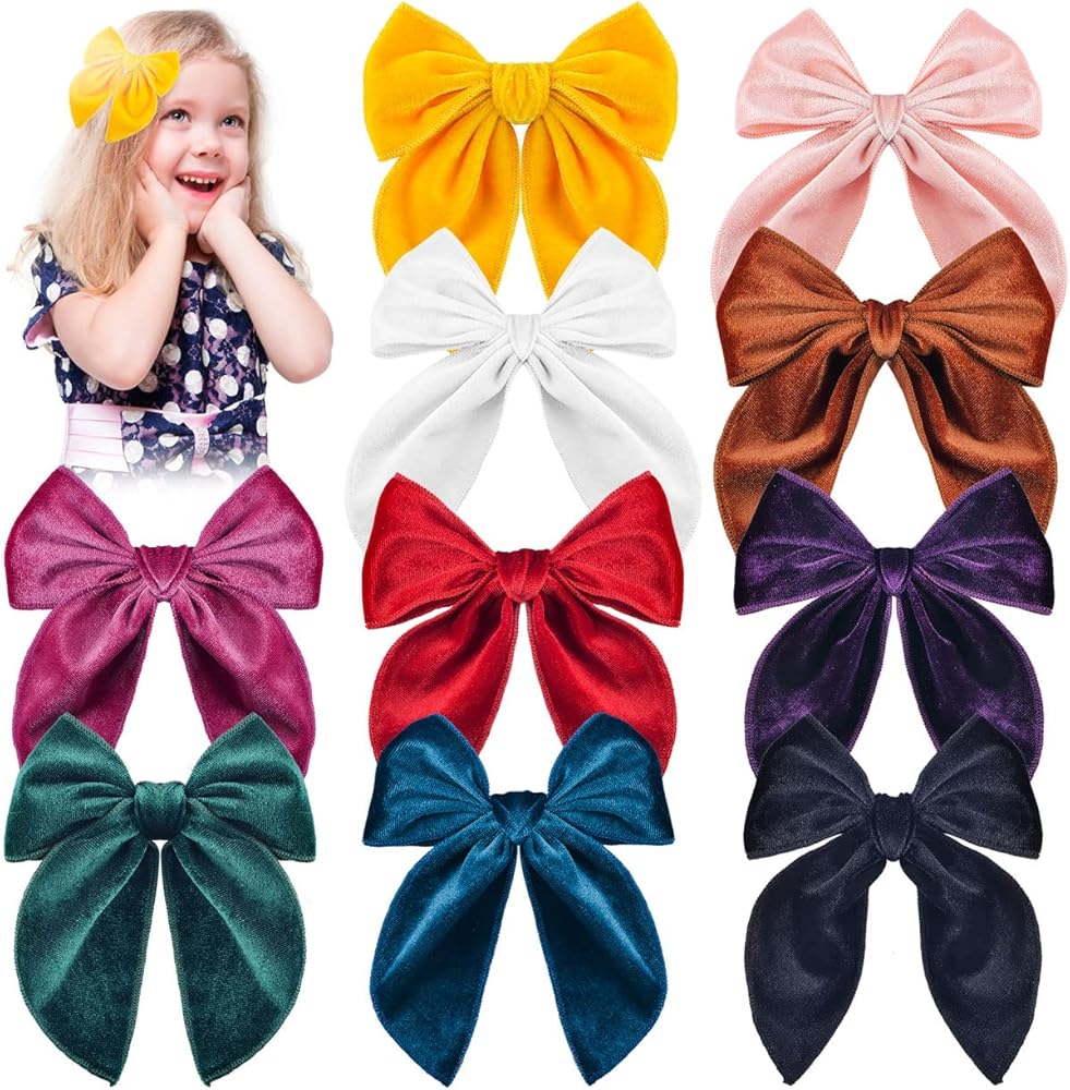 ★ مجموعة فيونكات شعر للفتيات: 10 قطع مشابك فيونكة مخملية بألوان مختلفة تناسب أي ملابس. هذه الأقواس الكبيرة للفتيات تحافظ على مظهر طفلتك الصغيرة جميلة كل يوم. هذه الأقواس للفتيات تناسب فتياتك جيدًا في أي موسم أو عند ارتداء أي ملابس. يمكنك اختيار القوس لتتناسب مع الزي الخاص بك.