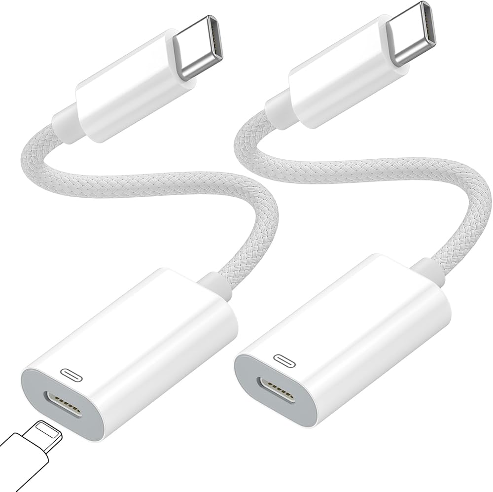 FONKEN لمحول كابل Lightning أنثى إلى USB C [عبوة من قطعتين] 4 بوصة PD شحن سريع من النوع C ذكر إلى 8 دبوس لهاتف iPhone 15/15 Pro/15 Pro Max، يدعم الشحن ونقل البيانات، وليس للصوت/OTG