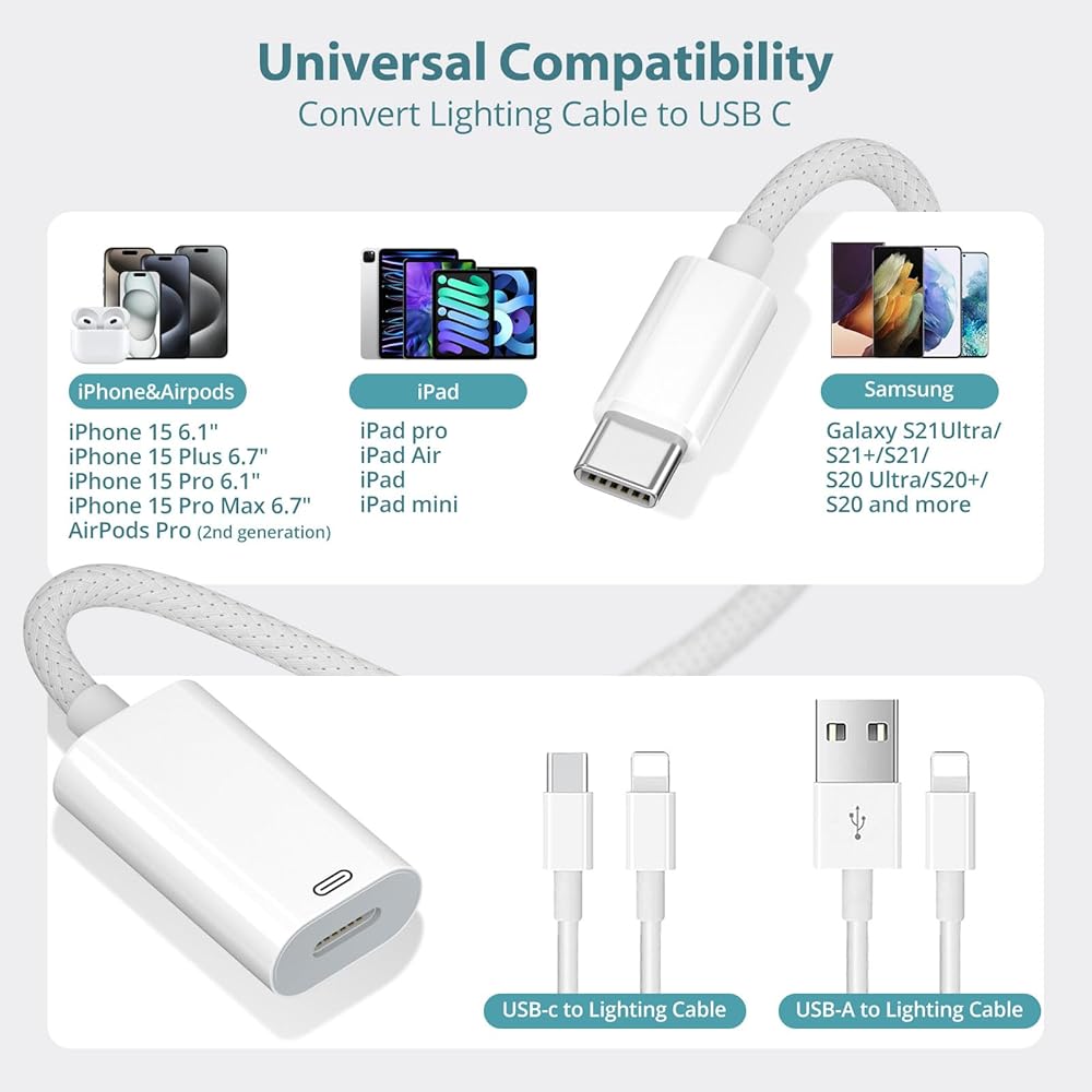 【Widely Compatibility】This Reversible USB-C cable adapter for iPhone 15 widely Compatible with iphone 15 Pro/15 Pro Max/15 Plus, Google Pixel 7/6/5, Galaxy Z Flip 5, Galaxy Z Fold 5, Galaxy S23/S23 Ultra/S23+/S22/S21/S21 Plus/ S20/Note 20/20 Ultra/10/10 Plus, iPad Pro/Air/Mini and other USB C devices.