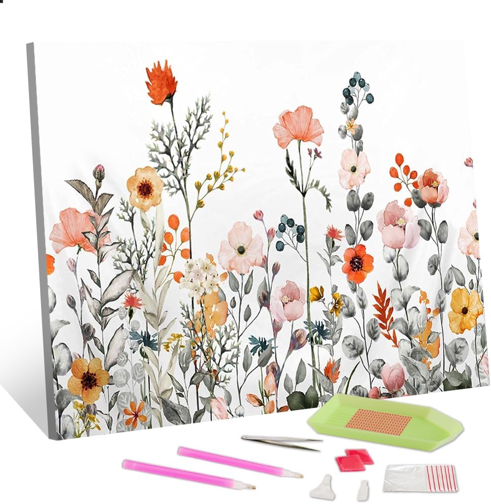 TISHIRON 5D الماس الفن اللوحة مجموعات الزهور DIY الحفر الكامل الماس الفن مجموعات الزهور اللوحة الحفر الكامل مصنع الماس جوهرة الفن عدة الحرف الفنية لديكور جدار المنزل 12 "× 16"