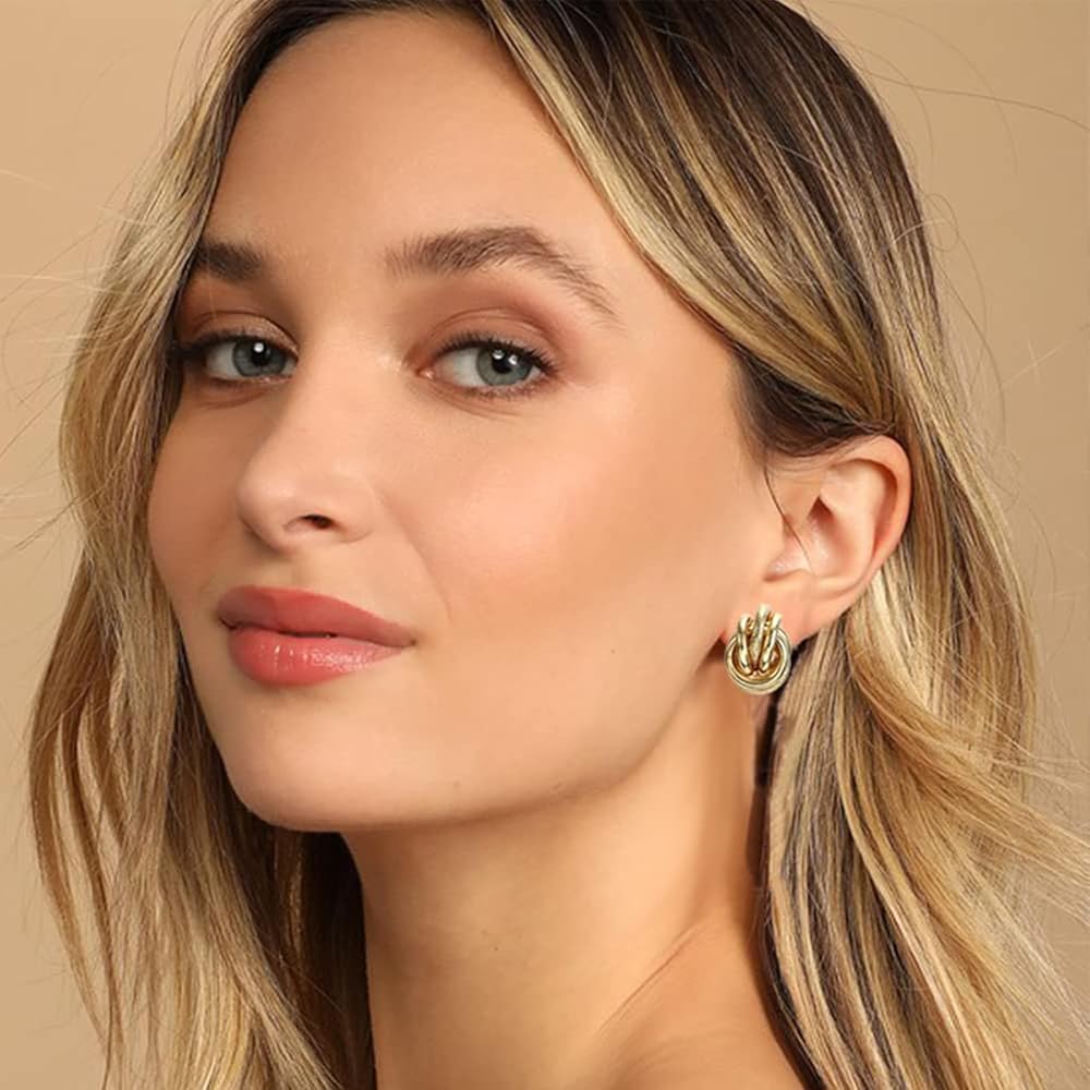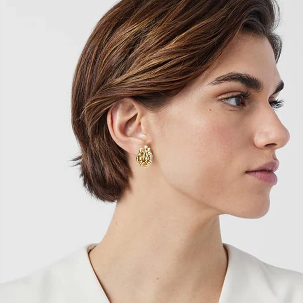 💖أقراط على شكل عقدة ذهبية: أقراط بمشبك ذهبي للنساء يمكن ارتداؤها في أي مناسبة. تصميم فريد وجميل، يمكن ارتداؤه مع المجوهرات والملابس الأخرى للحصول على مظهر جذاب.