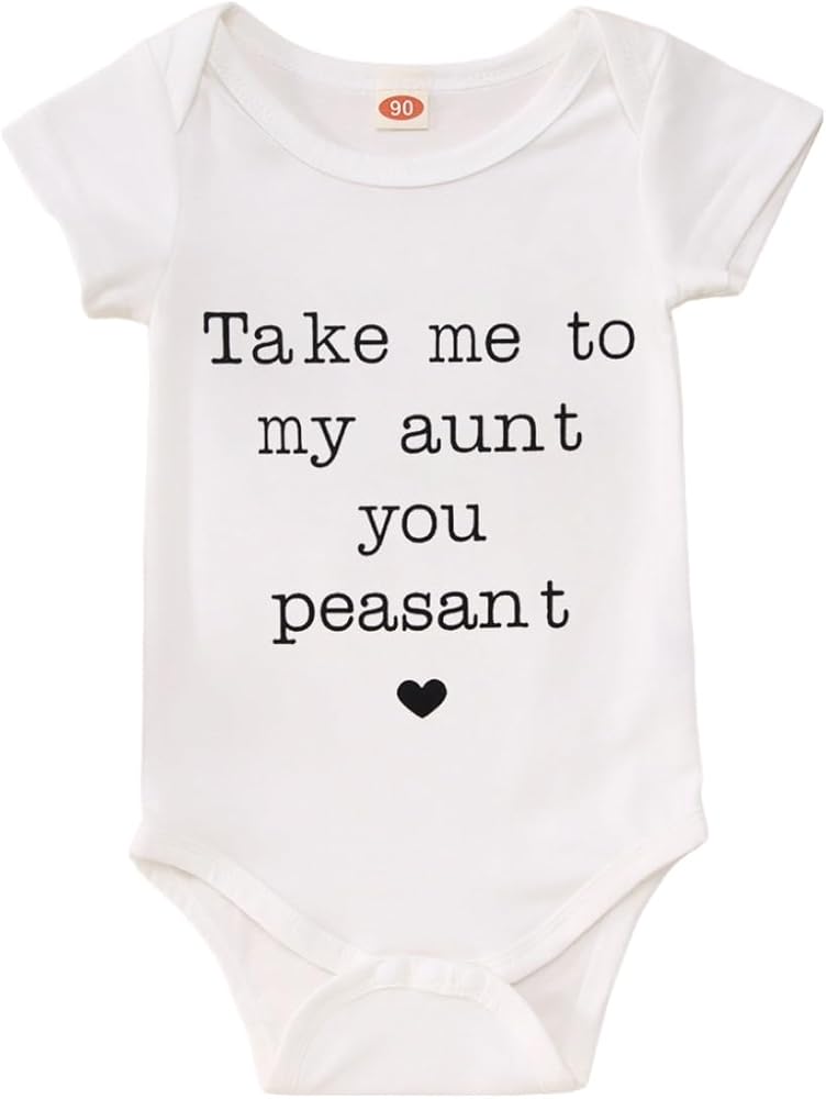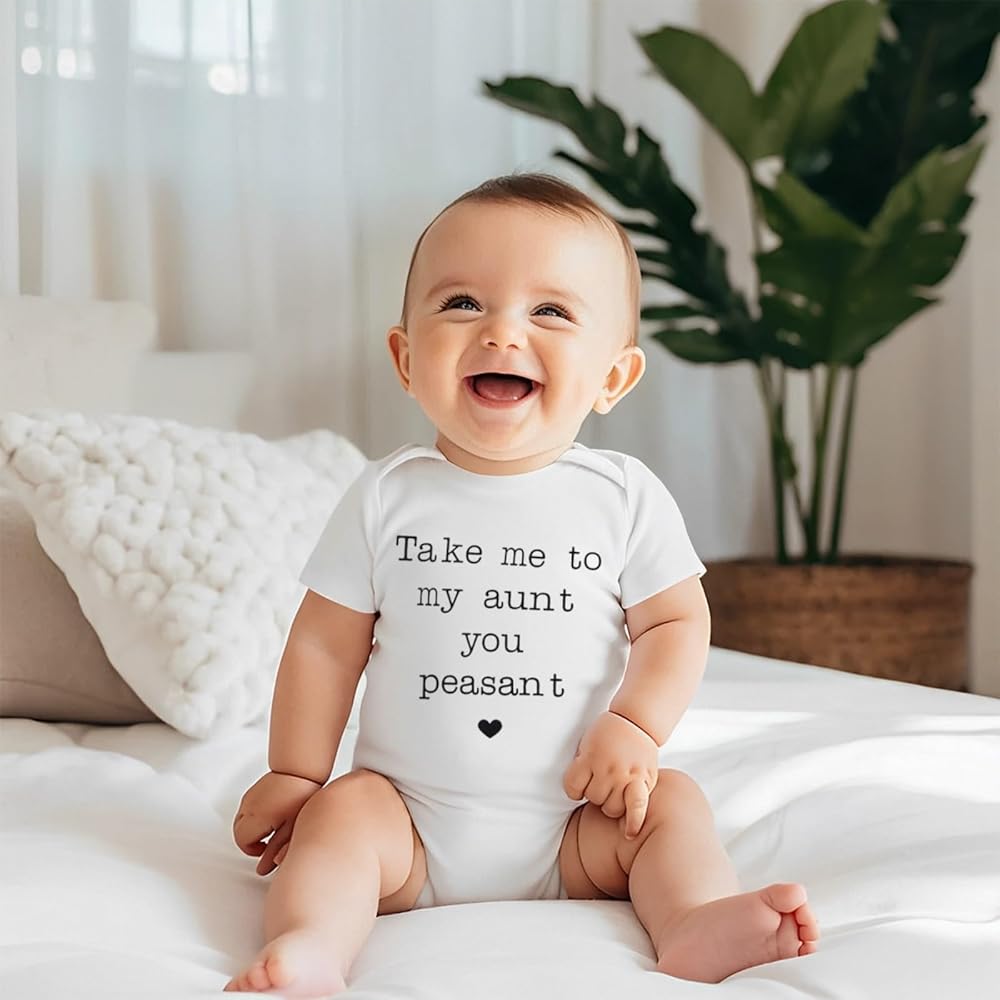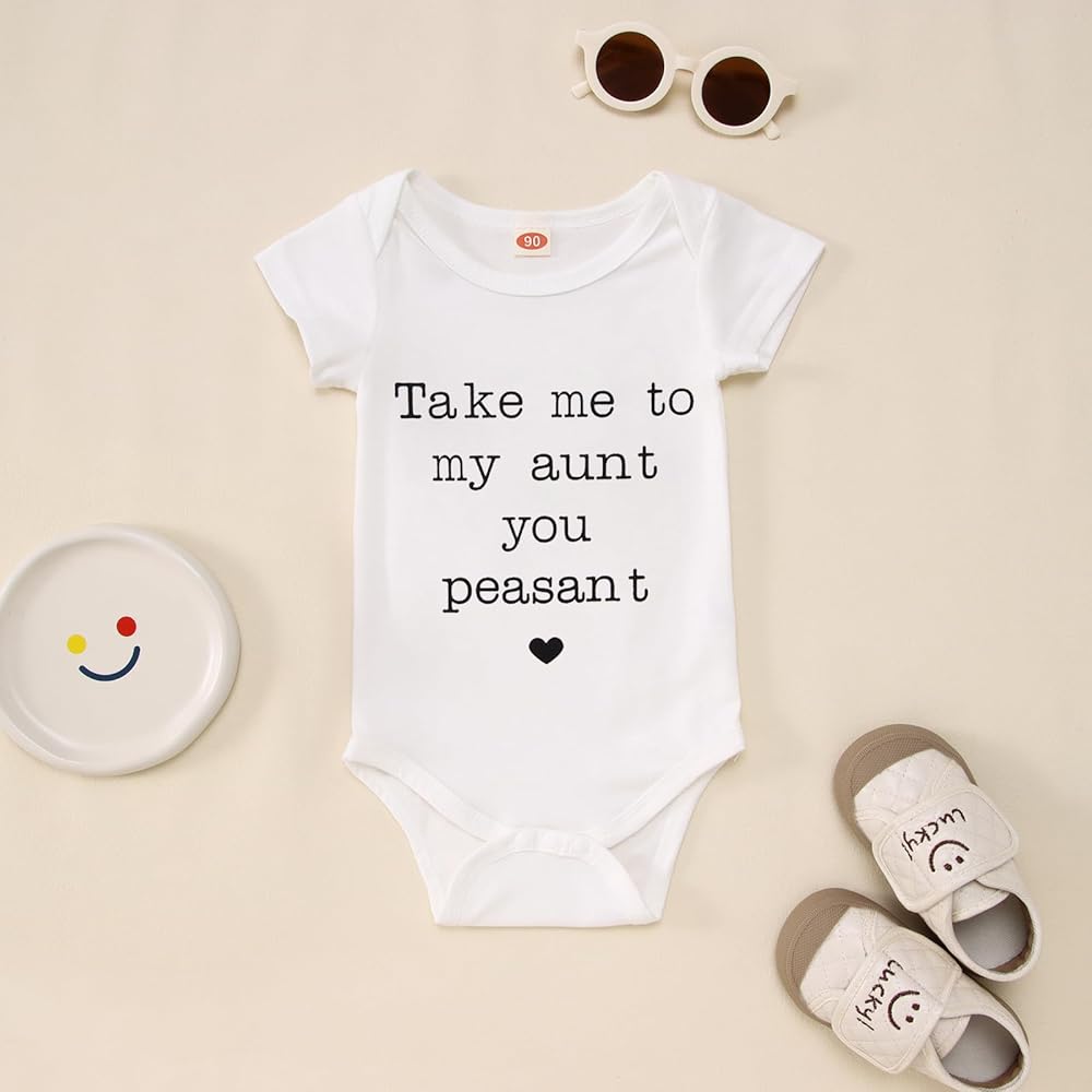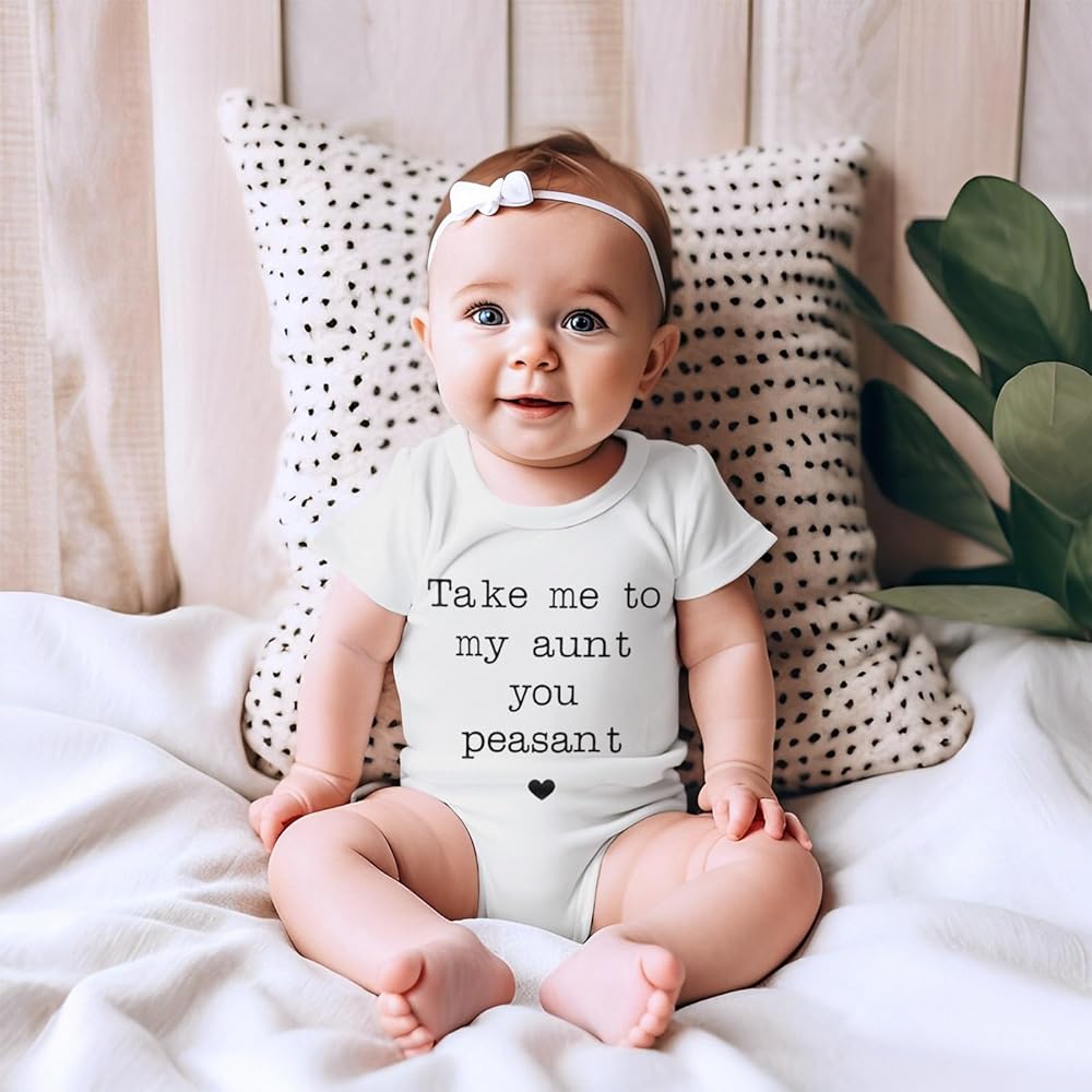 • 【التصميم】 رومبر لحديثي الولادة بأكمام قصيرة بأحرف مضحكة لطيفة مطبوعة "Take me to my aunt you الفلاح"، ملابس العمات بيستي للأطفال البنات والأولاد، بدلة قطعة واحدة للرضع والبنات. تصميم خط عنق قابل للتوسيع، أزرار كبس في الأسفل سهلة الارتداء والخلع، وأكثر ملاءمة لتغيير الحفاضات.