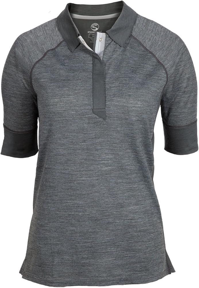 قميص نسائي خفيف الوزن وجيد التهوية من صوف ميرينو بأكمام قصيرة من Shower Pass... (ظل داكن، كبير)