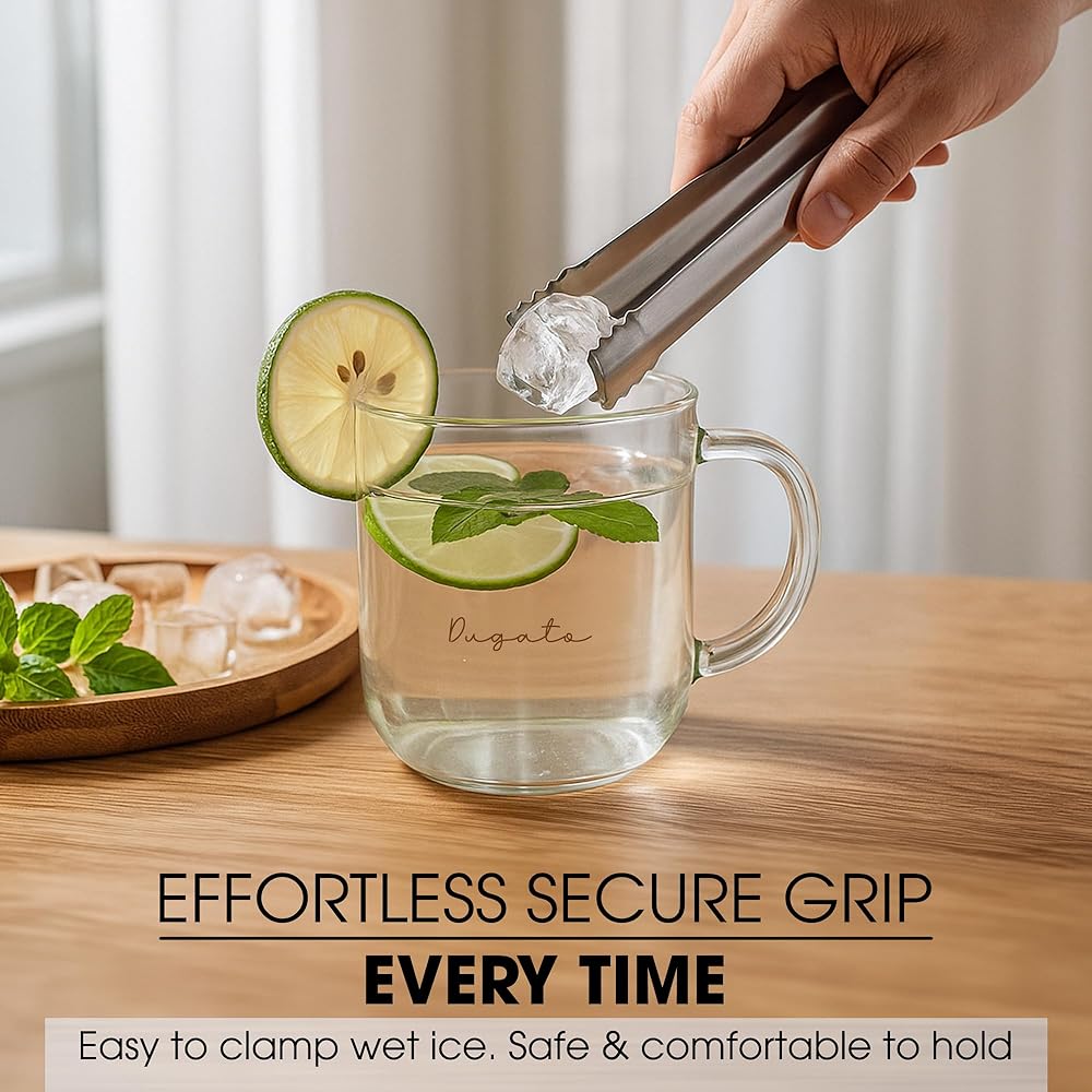 قبضة آمنة مع أسنان المنشار: تتميز ملقط مكعبات الثلج بأسنان منشارية على الحواف، مما يسمح لك بتثبيت مكعبات الثلج الرطبة والزلقة بإحكام وإمساكها بسهولة. علاوة على ذلك، يمكن أيضًا استخدام هذه الملاقط متعددة الاستخدامات كملاقط لتقديم السكر أو الطعام، مما يوفر المزيد من الراحة والوظيفة.