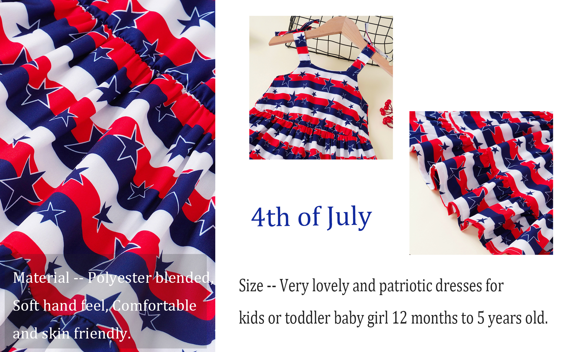 تشمل العبوة -- 1 × فستان بدون أكمام، زي وطني لطيف جدًا للفتيات الصغيرات في الرابع من يوليو.