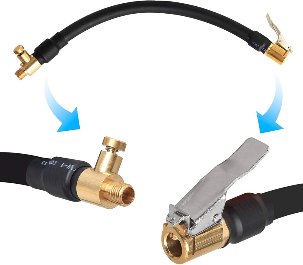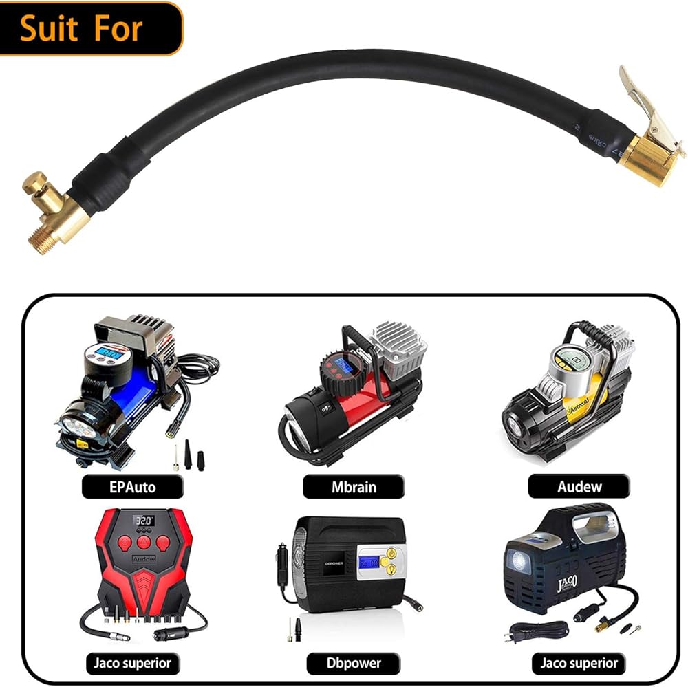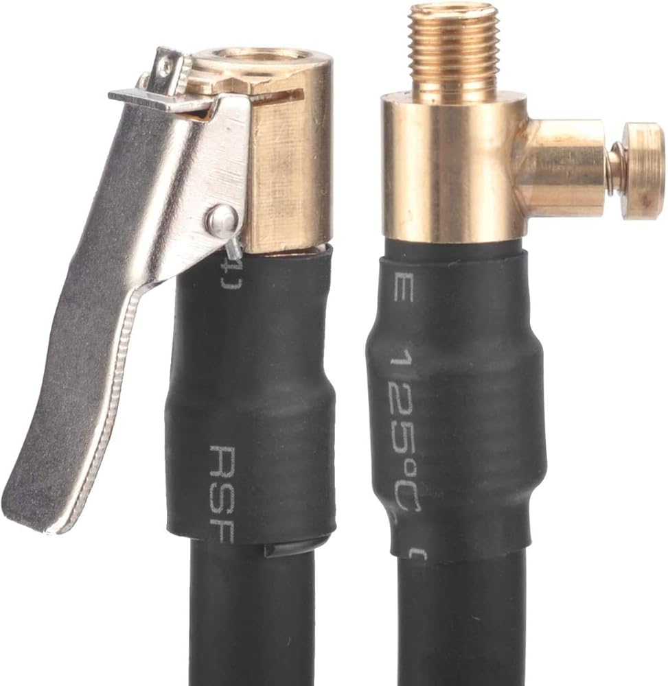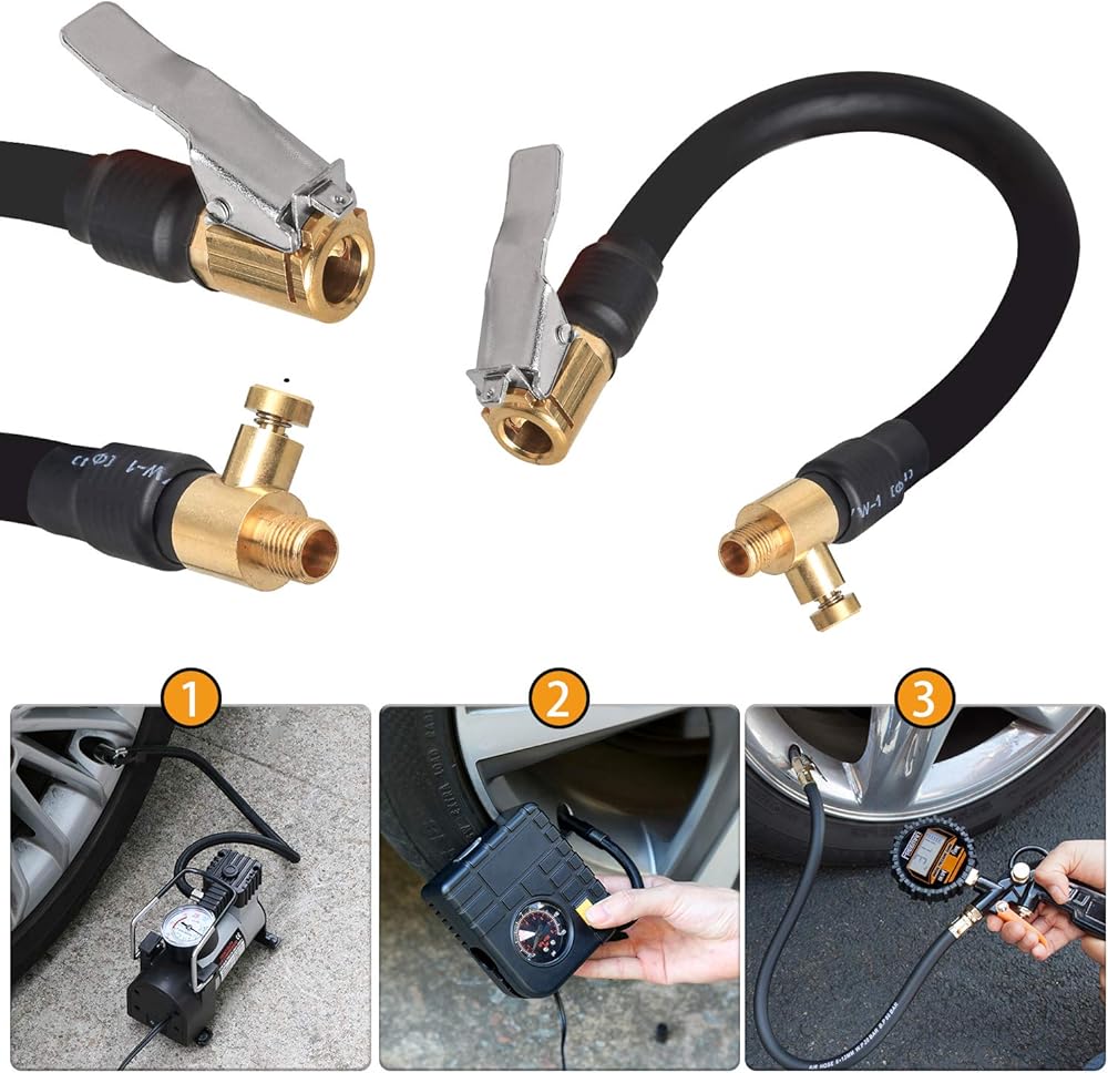 The Air Hose made of rubber, durable and not easy damaged. The hose attached brass air valve clip, which can be connected tire valve. Ideal for inflating tires.