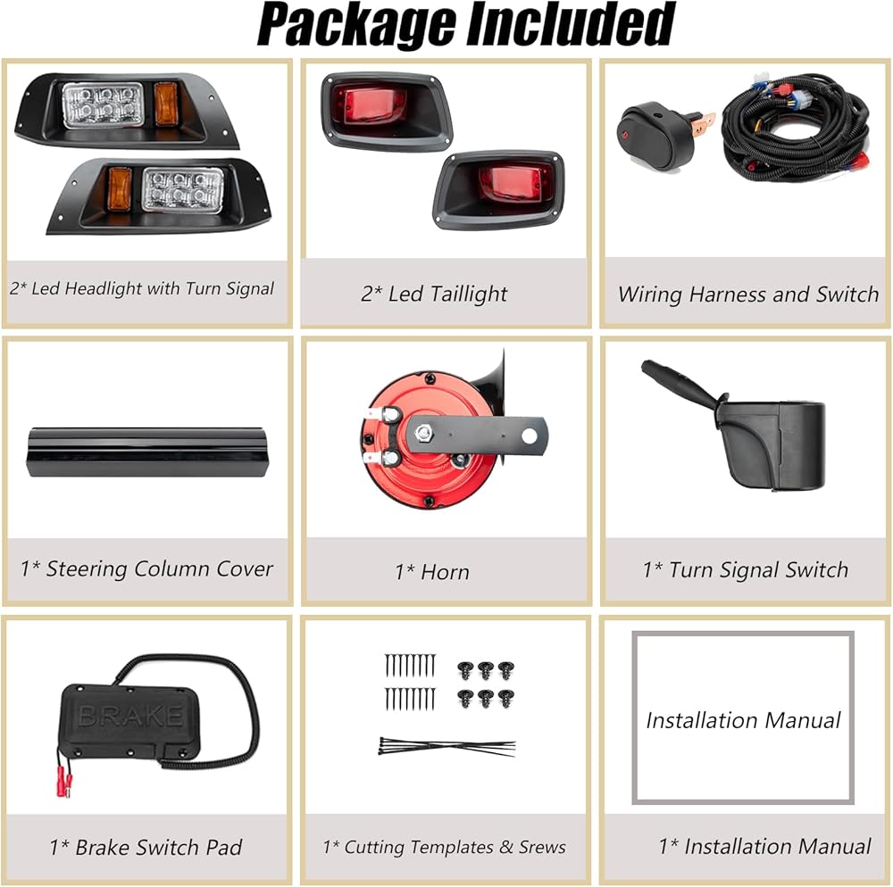 【المميزات】: لتحديث موديلات الغاز والكهرباء الخاصة بك Club Car DS 1993-up مع مجموعة أكثر سطوعًا وملحوظة من المصابيح الأمامية والمصابيح الخلفية وما إلى ذلك، تحسين المظهر العام لعربة الجولف الخاصة بك ومنحها حضورًا أكبر وأمانًا إضافيًا الرؤية.