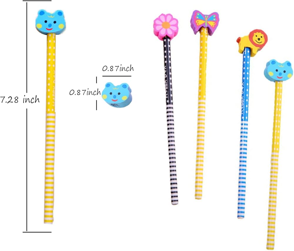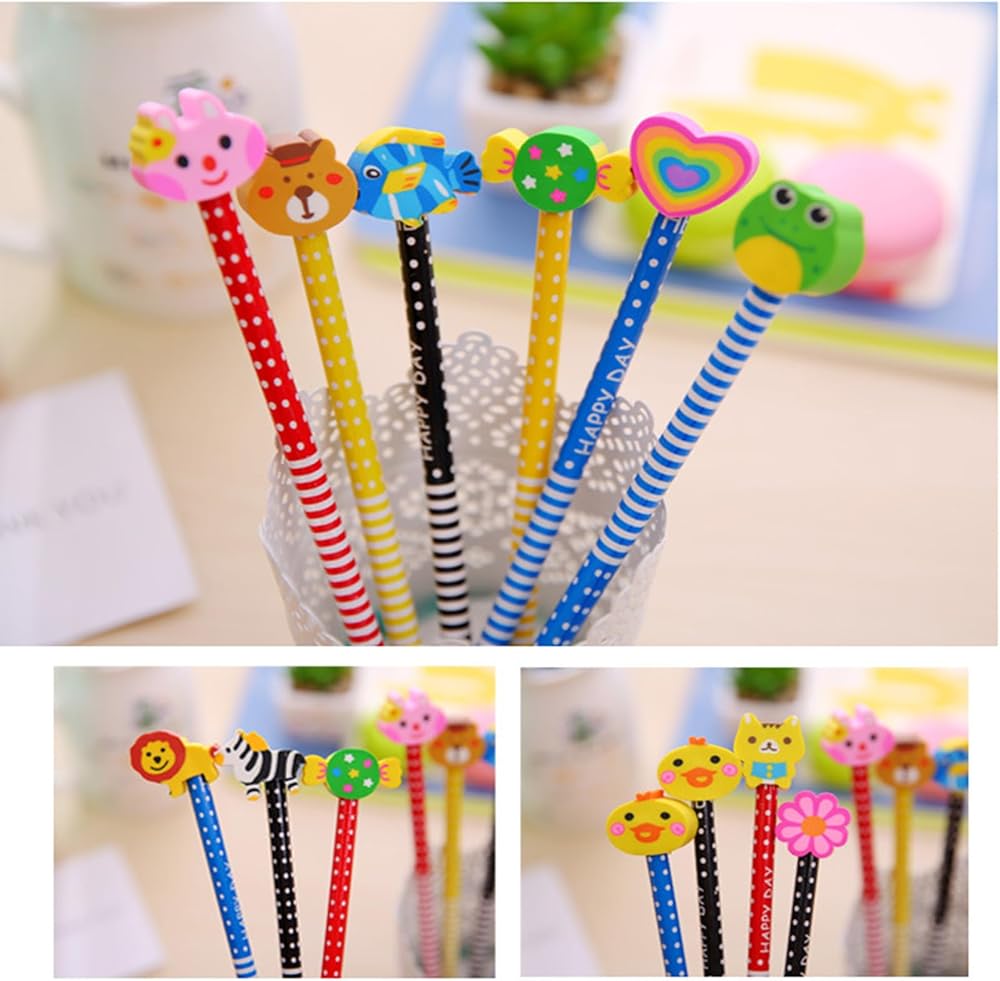 ✏️ شكل كرتوني: أقلام الرصاص الملونة للأطفال هذه مجهزة بممحاة حيوانات كرتونية ناعمة وقابلة للإزالة على قممها؛ تتضمن هذه الممحاة مجموعة متنوعة من أشكال الحيوانات اللطيفة، مثل الأسماك والأسود والفراشات والقطط وما إلى ذلك (يتم شحن الأشكال بشكل عشوائي)؛ يمكنهم جلب المرح للأطفال وتحسين حماس الأطفال للتعلم