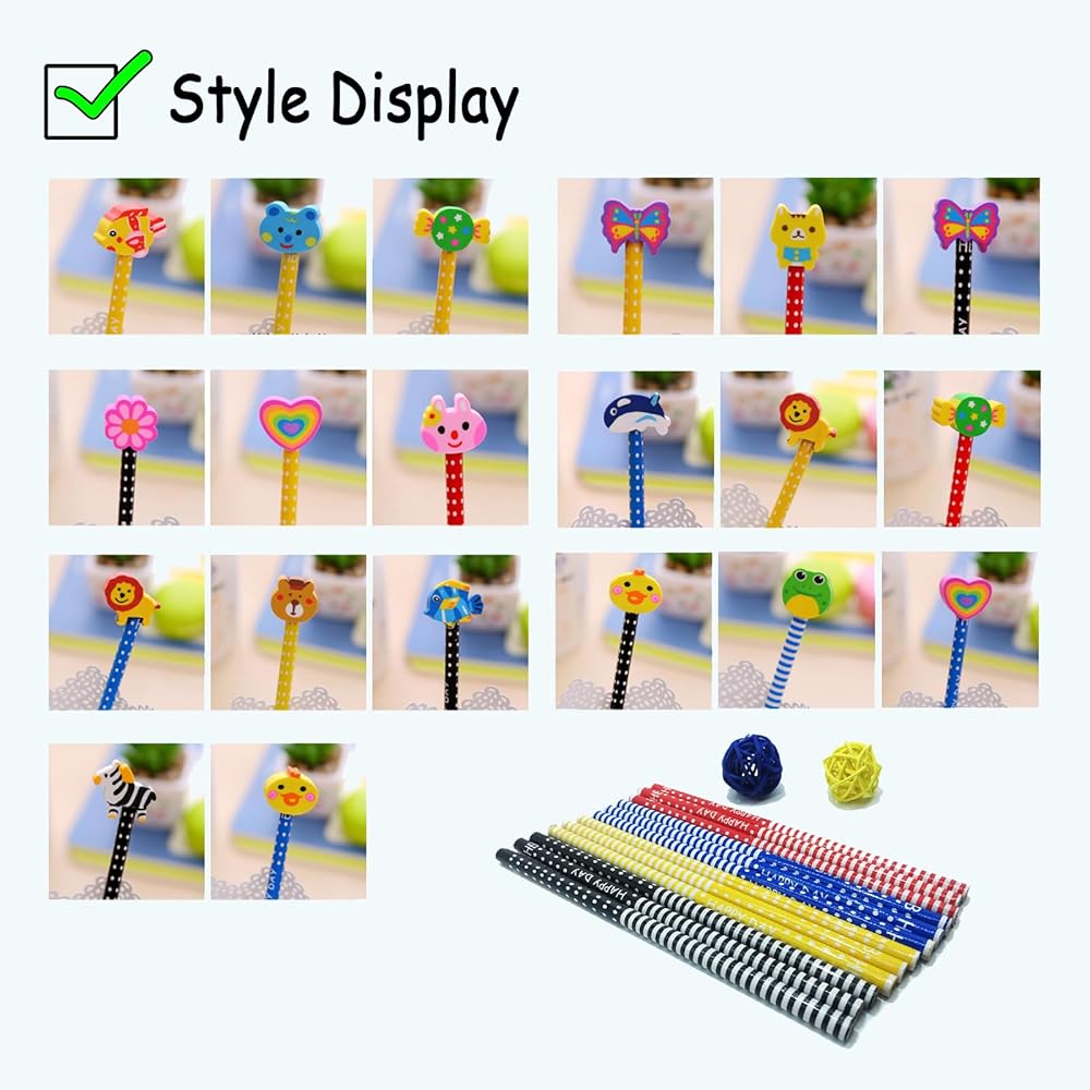 😺 تصميم السلامة: الجزء العلوي من القلم مزود بممحاة مختلفة على شكل رسوم متحركة على شكل فاكهة أو حيوان قابلة للفصل، الممحاة مصنوعة من مطاط غير سام وصديق للبيئة. ممحاة ناعمة تسمح للأطفال بمسح الأخطاء أو الكتابة الخاطئة غير المرغوب فيها بسهولة وسرعة ونظيفة.