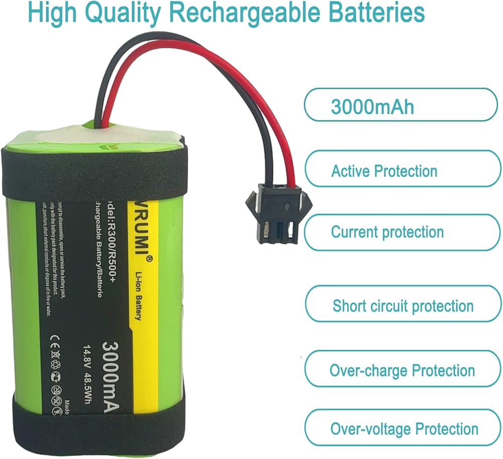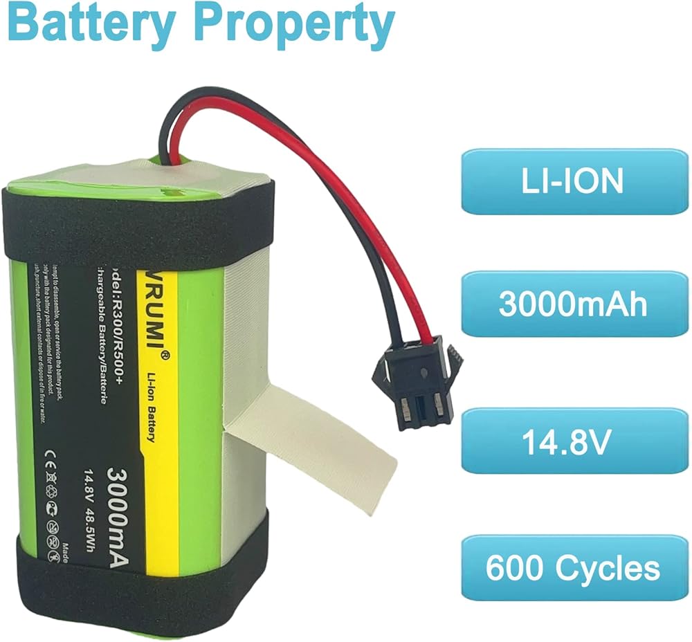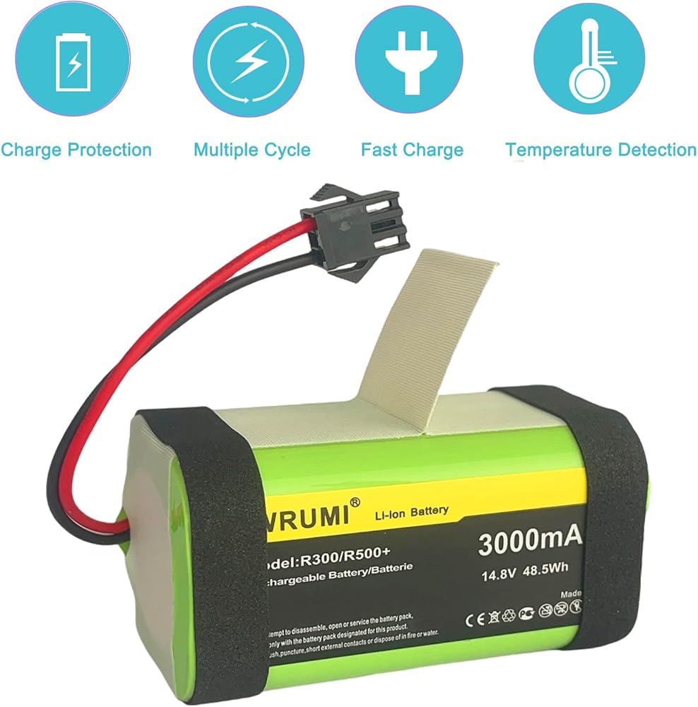 بطارية بديلة WRUMI 3000 مللي أمبير في الساعة لـ Coredy R300، R500+، R650، R3500، R3500S، R600، R580، R750 R550 لـ Amarey A800، A900، Tesvor X500 / X500 Pro Robot المكانس الكهربائية 14.8 فولت
