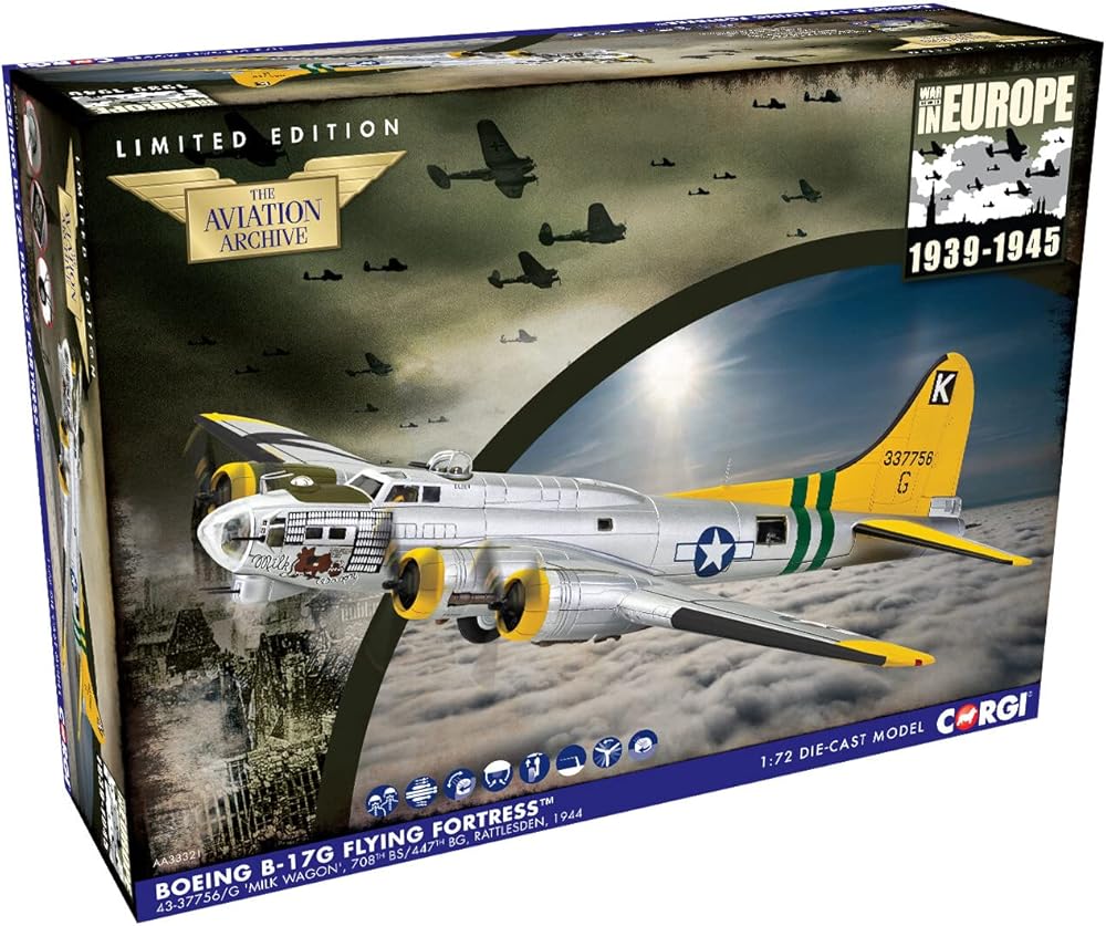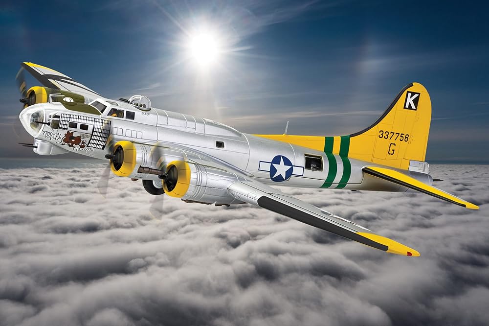 Going into WWII, under the wire, the Boeing B-17 almost did not make the cut to becoming one of the most famous bombers of all time after the prototype crashed in testing. Ultimately, this resulted in the updates Boeing needed to propel this bomber forward to becoming the most successful bomber of WWII, dropping more bombs than any other United States airplane. Boeing was not even halfway through fulfilling their initial order, with 155 in service when Pearl Harbor was attacked by the Imperial Japanese Navy, ramping up production and creating several variants to include this powerhouse in as many missions as possible, creating a versatile and reliable transport, wherever it was assigned. The G variant of the Flying Fortress, was just that, an almost impenetrable defensive bomber that could take a beating and increased armor and armaments with each variation and with 4 engines, if one was damaged, the mission could still be completed. The Milk Wagon directly contributed to the efforts during the Battle of Normandy, aiding troops that landed on D-day in the weeks following, even proved to go above and beyond the already exceptional reputation flying over 129 missions through the entirety of World War II. As it was like a Milk Run and each run gaining a milk bottle to every successful mission completed, this B-17G Flying Fortress never faced a mechanical problem or even had to abort a mission, a testament to this war machine as well as the crew that kept her running in combat shape.