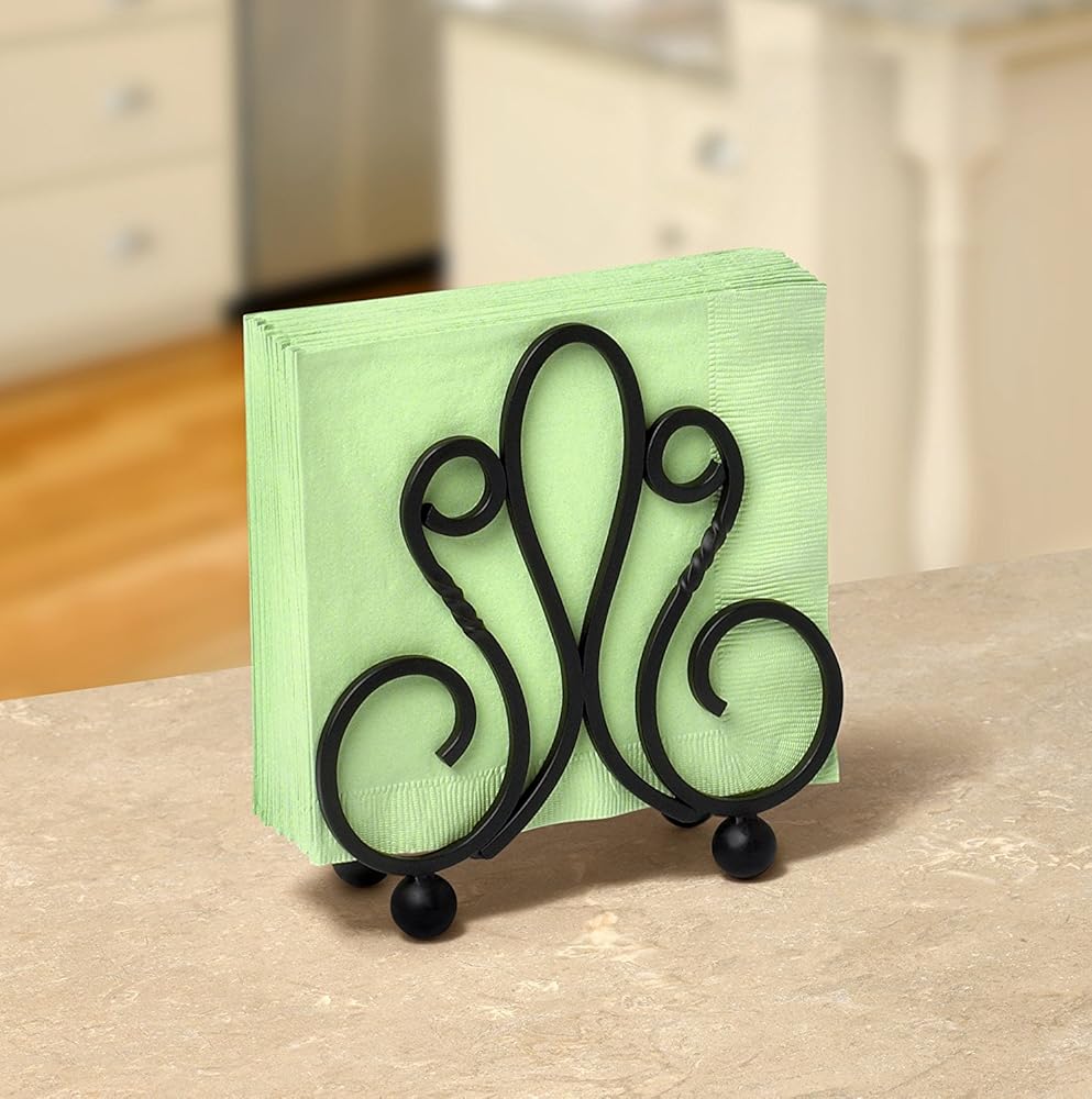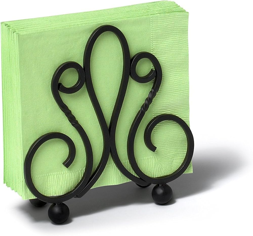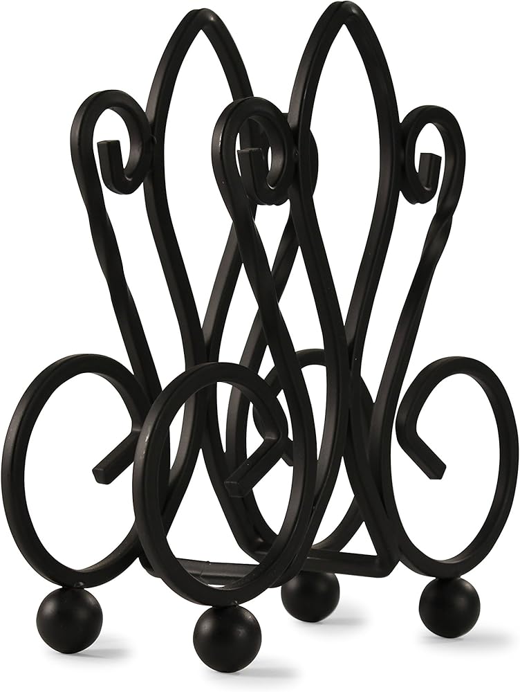 Add a great centerpiece to your kitchen or dining room table with the decorative Patrice Vertical Napkin Holder from Spectrum Diversified. This napkin holder keeps your napkins off the table and easily accessible. Vertical storage makes it easy to grab a napkin when you need to wipe your face, protect your lap from dropped food, or soak up a spill. Place the wire metal napkin holder on the dining table, kitchen countertop, picnic blanket, coffee table, home bar, breakfast nook, or anywhere else you might need napkins. Sturdy base is designed to prevent tipping, wobbling, or toppling. The steel supports the weight of the napkins and distributes the mass evenly along the ring, preventing the napkin holder from falling over. Steel design is heavy enough to stay upright, yet light enough to move easily when needed. Add style to your kitchen storage and organization with a bold design, inspired by the iconic fleur de lis. Invite traditional elegance and classic style into your kitchen while keeping the area neat and organized. While created to serve an ergonomic function in your home, designers kept style in mind so this functional addition will add some fashion to your home, too. The stylish design looks great in any room, adding a fashionable, functional item to your home. The graceful and timeless fleur de lis motif creates an elegant design that adds a touch of sophistication to your home. Made of sturdy steel.