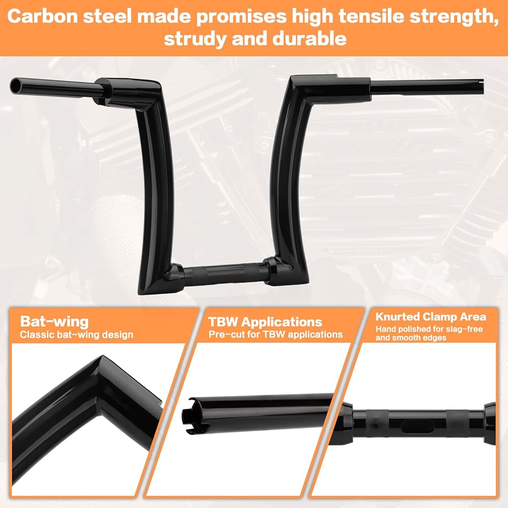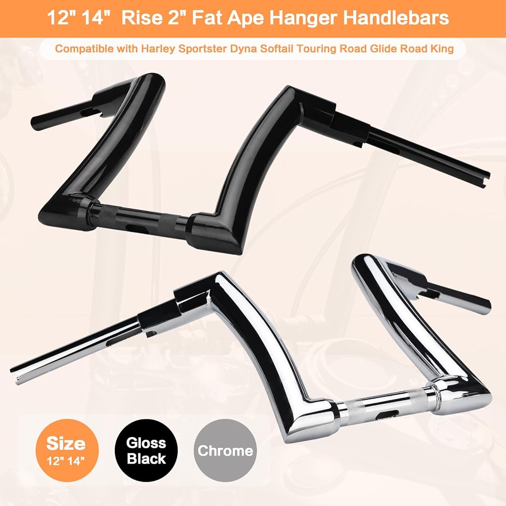 【الاستخدام】مقود VG MOTO بطول 12 بوصة من الدهون 1-1/4 بوصة هو جزء ما بعد البيع، متوافق مع Harley-Davidson Dyna Touring Softail FLST FXST Sportster XL 1200 Lowrider. (لا يناسب طرازات Street Glide أو Electra Glide أو أي طراز بجولة مع جناح الخفاش، ولا يناسب موديلات Road Glide لعام 2014 الأحدث)