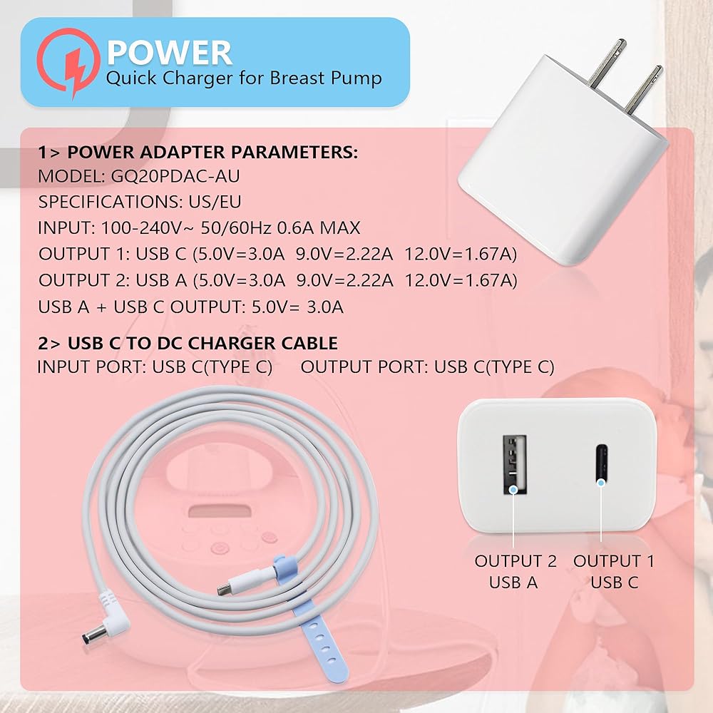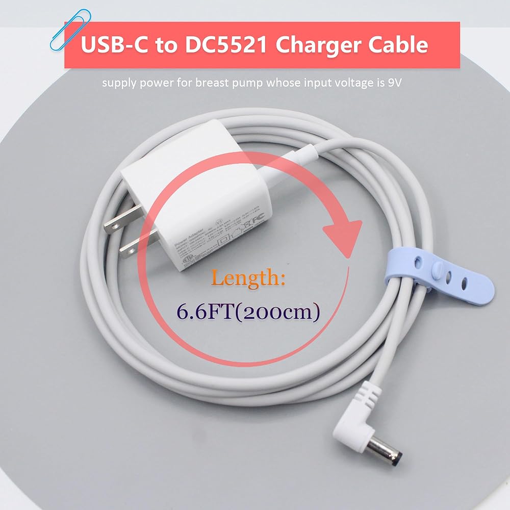 Flexibility: The 6.6Ft long Power cable allow you more flexible without limited when charging breast pump use with AC PD fast chargers which have USB C output and support PD2.0/3.0/3.1, and keep your room neat as wel. Also let you walk freely when use breast pump once you use with USB C output power bank which support PD2.0/3.0/3.1