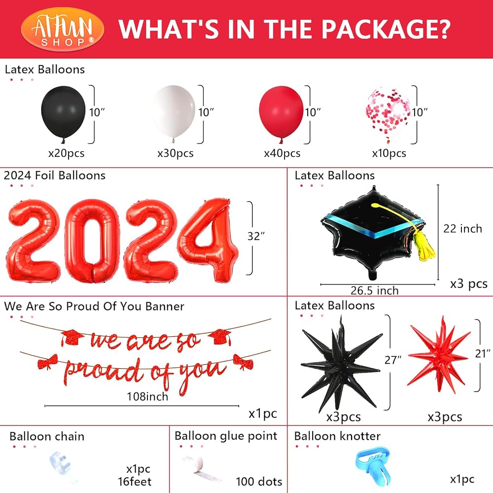 الأفضل لديكورات حفلات التخرج لعام 2024: التخطيط لحفلة التخرج، الأدوات التي تحتاجها متضمنة وستساعد على جعل الحفلة جميلة لا تُنسى. مع وضع لافتة التخرج على الحائط كخلفية وقوس بالون التخرج باللون الأحمر والأسود، يمكنك بسهولة الحصول على حفلة تخرج مثالية لعام 2024 للخريجين!