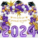 لافتة التخرج: لافتة التخرج هذه "نحن فخورون جدًا بك" مثالية لديكورات التخرج في الهواء الطلق، أو ديكورات التخرج من المدرسة الثانوية أو الكلية. عبر عن مدى فخرك بإنجازات أطفالك. قم بتعليقها على الحائط، أو النافذة، أو الشرفة، أو الشرفة، أو كدعامة للصور لإضافة بعض أجواء التخرج إلى حفلة التخرج.