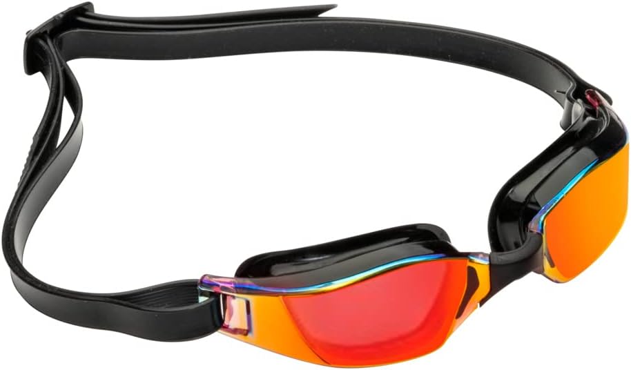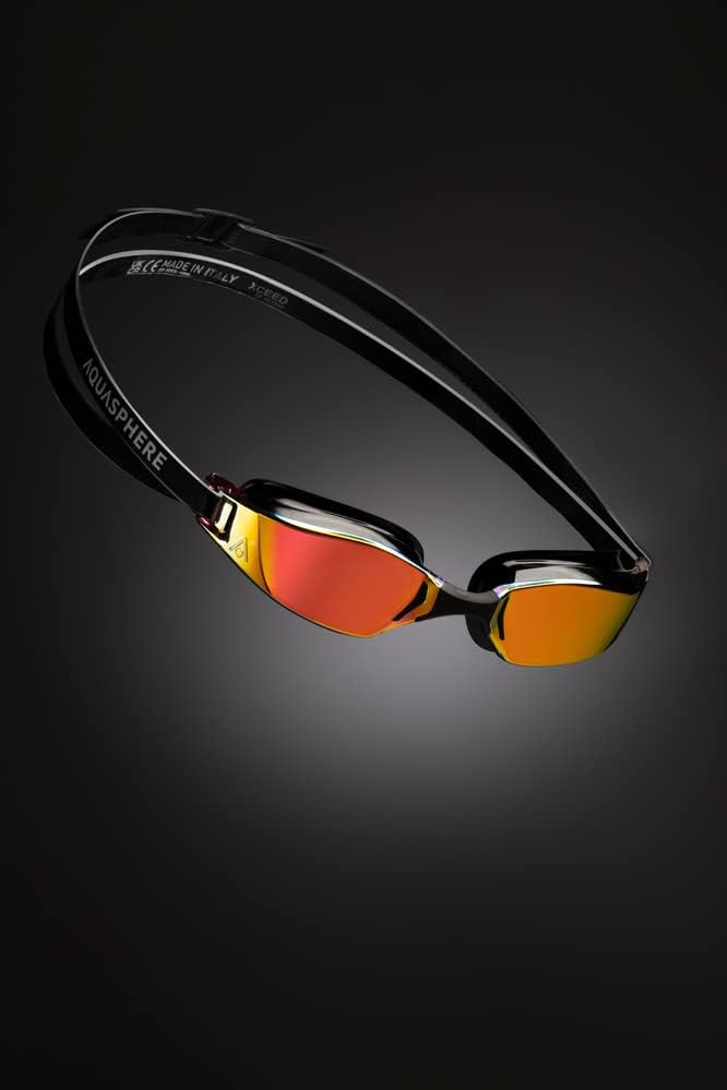 نظارات السباحة Aqua Sphere XCEED للبالغين - تقنية العدسات المنحنية، جسر الأنف القابل للتعديل - الشريك المثالي للسباحين عالي الأداء - عدسة مرآة من التيتانيوم الأحمر / إطار أسود