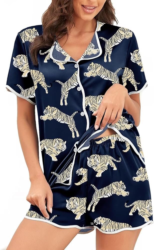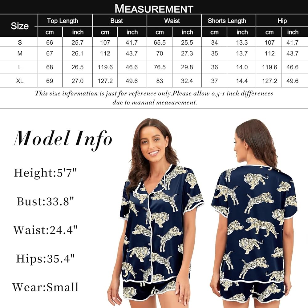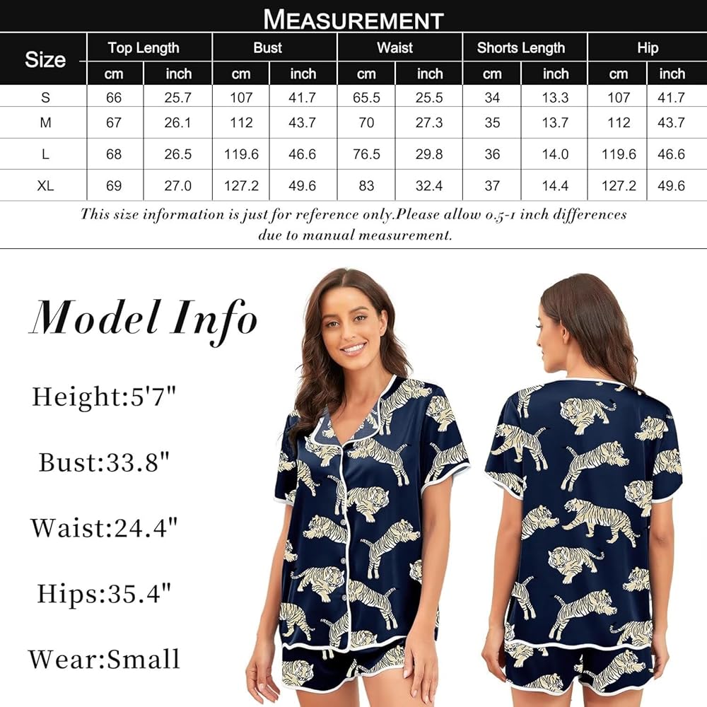❤طباعة حيوانات عصرية: تعرض البيجامات الحريرية للسيدات تصميمًا رقيقًا مع مطبوعات حيوانات، مما يضفي إحساسًا بالأناقة والحيوية، مما يسمح لك بالحفاظ على مظهر أنيق في المنزل أو قبل وقت النوم.