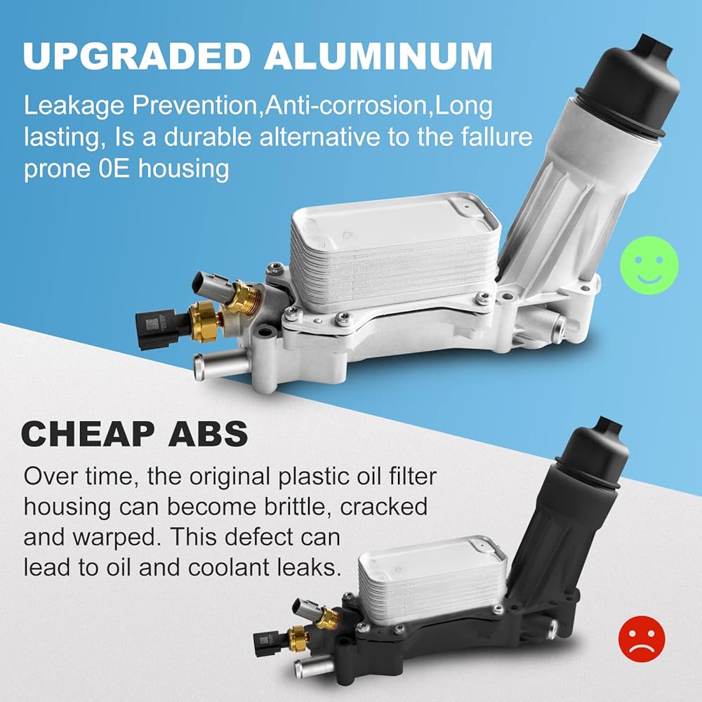 أفضل ميزة: قاعدة مطورة لمبرد زيت المحرك من ABS إلى هيكل من الألومنيوم المقوى، أقوى وأكثر متانة. نظرًا لأن البلاستيك يتحلل في نهاية المطاف بسبب الحرارة والتعرض للمواد الكيميائية، فإنه يمكن أن يتشقق أيضًا بمجرد تضييق غطاء فلتر الزيت أثناء تغيير الزيت. عندما يفشل، فإن استبداله بغطاء OEM قد يعني نفس المشكلات مرة أخرى في المستقبل.