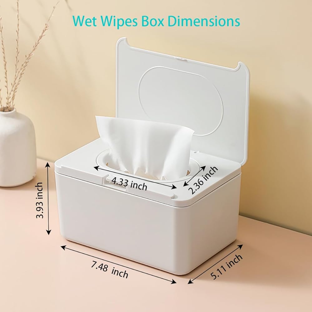 عبوتان من موزع مناديل مبللة للأطفال للحمام، الحجم (7.48 بوصة طول × 5.11 بوصة عرض * 3.93 بوصة ارتفاع)، صندوق حامل مناديل مبللة قابل للفتح بيد واحدة، صندوق مناديل أنيق لتنظيم حاوية تسجيل الأطفال