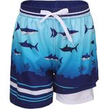 Boys Swim Trunks with Compression Liner Swim Shorts for Kids Boys Quick Dry Beach Board Shorts with Hawaiian 3D Prints
