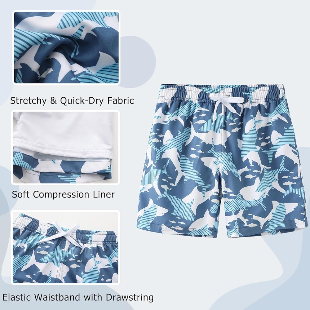 • »»»» PLAYFUL AND CAREFREE «««« Cute boys swim shorts with boxer brief liner offer better coverage and no chafing comfort than other swim shorts along with its built-in sun protection by applying the UPF 50+ rated fabrics. Enjoy a playful and carefree vacation.